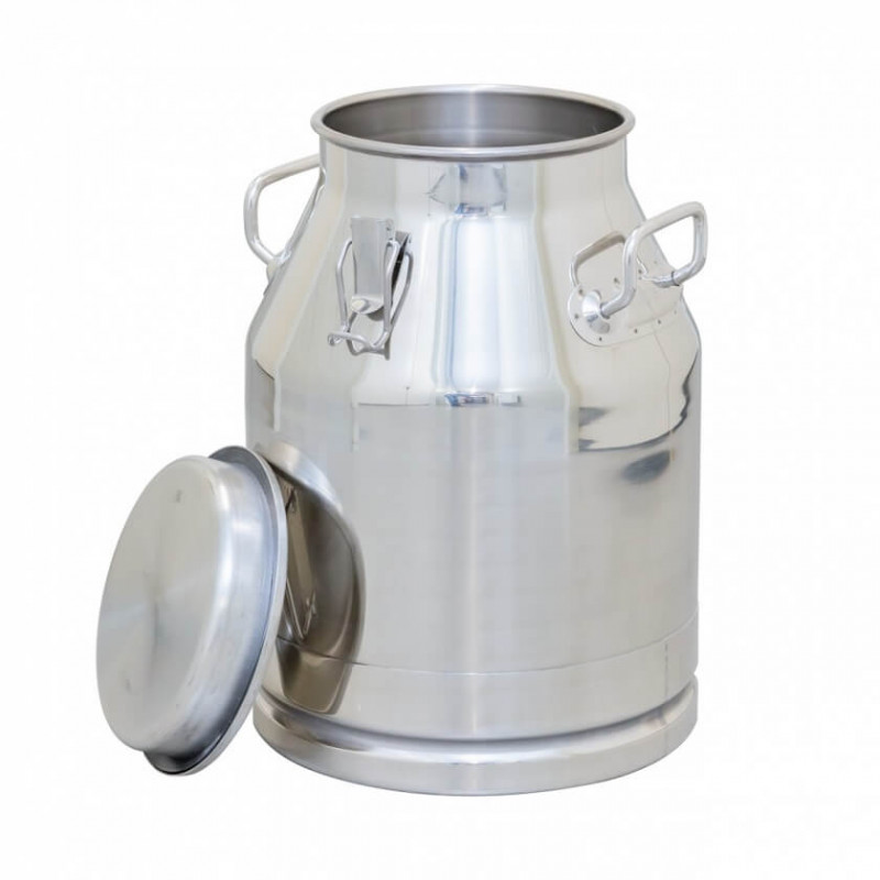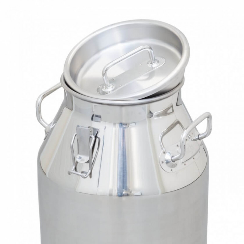 Bidon inox 30 litri cu manere si prindere cu clipsuri si capac inox pentru a transporta laptele, miere, etc.