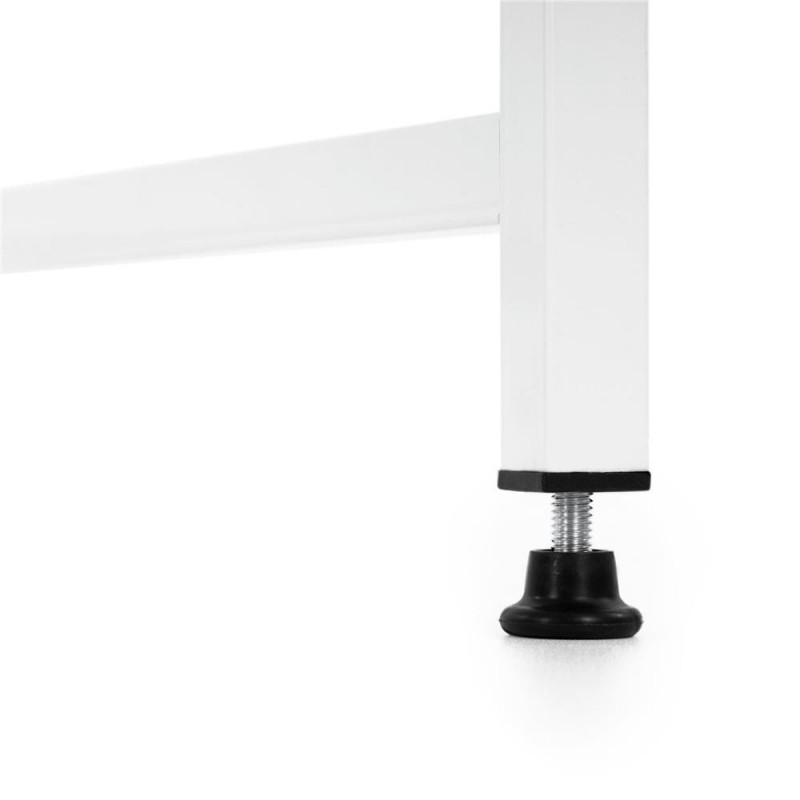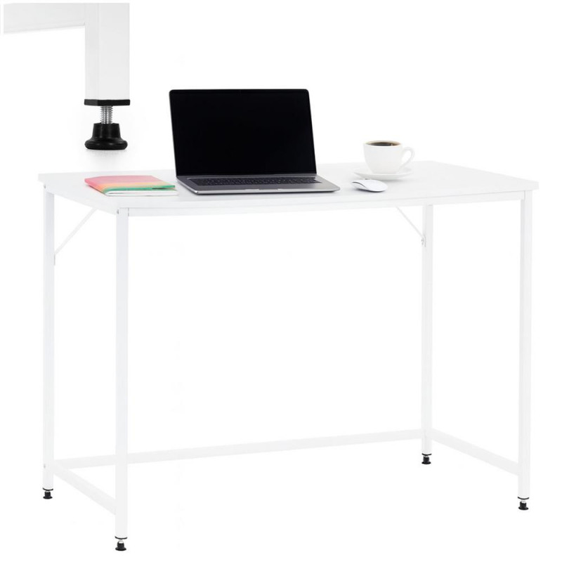 Scurta descriere Biroul cu design modern este o solutie practica pentru birou, dormitor sau spatiul de lucru de acasa. Blatul din MDF ofera o suprafata confortabila pentru laptop, monitor sau accesorii de birou, iar cadrul metalic asigura stabilitate si rezistenta in utilizare zilnica. Constructia este consolidata cu doua suporturi metalice diagonale care cresc rigiditatea si stabilitatea. Picioarele reglabile permit nivelarea mesei pe suprafete usor denivelate, oferind confort si siguranta in utilizare.