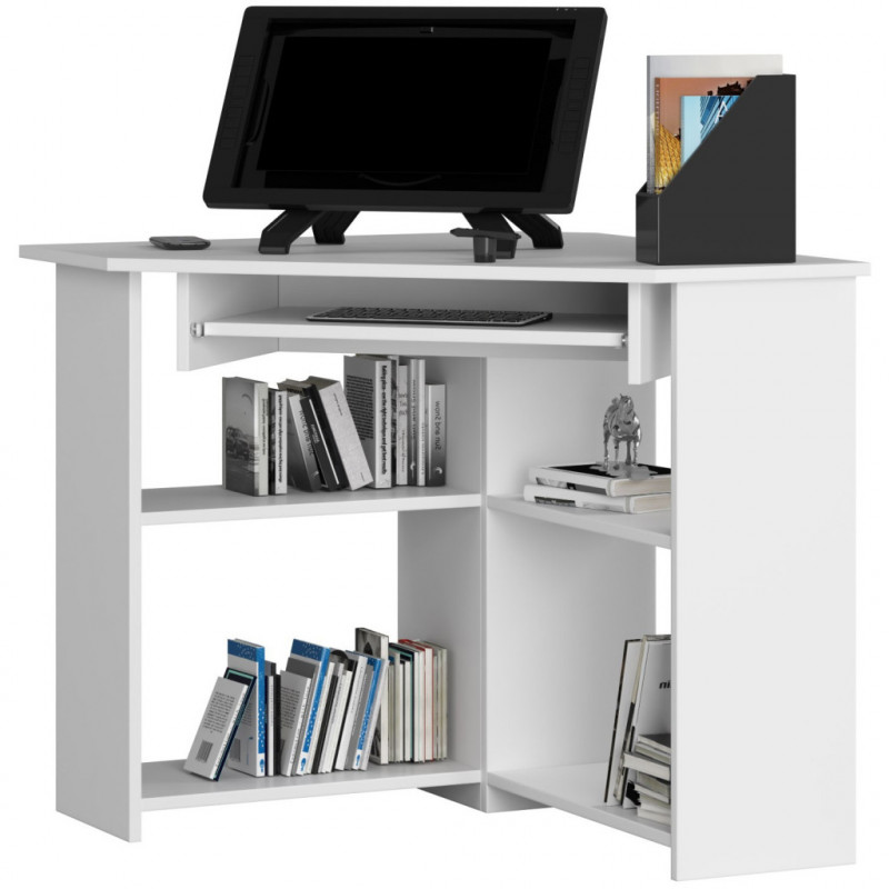 Scurta descriere Biroul colt TED este o solutie practica si moderna pentru spatii de lucru compacte, oferind confort si functionalitate in acelasi timp. Blatul generos permite asezarea monitorului, a documentelor si a accesoriilor de birou, in timp ce rafturile integrate ofera spatiu suplimentar pentru organizare eficienta. Construit din placa laminata rezistenta la uzura si cu margini protejate prin banda ABS, biroul garanteaza durabilitate si rezistenta in timp. Designul sau alb, cu finisaj mat, aduce luminozitate si eleganta in orice incapere – fie ca este vorba despre un birou de acasa sau un spatiu de studiu.