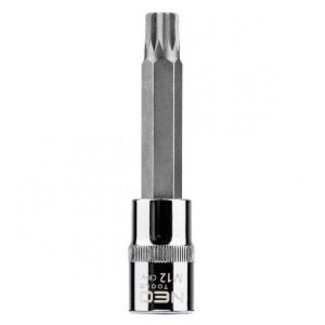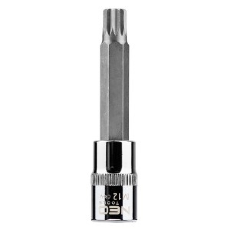 Tubulara cu Bit Spline Neo de 1/2" (ref. 08-744) dimensiune M12, lungime 100 mm. tubulara este fabricat din otel crom vanadiu durabil. Capatul hexagonal este fabricat din otel aliat S2 de inalta calitate. Garantia de 25 de ani a producatorului confirma calitatea inalta a sculei. Marca Neo raspunde asteptarilor profesionistilor.