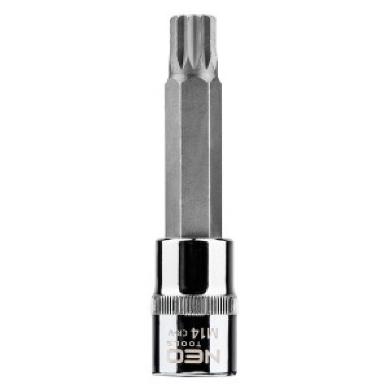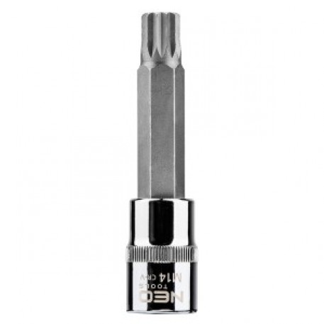 Tubulara cu Bit Spline Neo de 1/2" (ref. 08-745) dimensiune M14, lungime 100 mm. tubulara este fabricat din otel crom vanadiu durabil. Capatul hexagonal este fabricat din otel aliat S2 de inalta calitate. Garantia de 25 de ani a producatorului confirma calitatea inalta a sculei. Marca Neo raspunde asteptarilor profesionistilor.