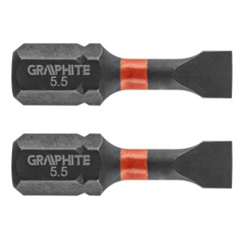 GRAPHITE Biti de impact (ref. 56H510) tip SL5. 5, cu o lungime totala de 25 mm, sunt niste biti rezistenti, conceputi pentru aplicatii cu cuplu mai mare de torsiune cu ajutorul surubelnitelor sau al masinilor cu impact. Fabricat din otel S2 de inalta calitate, care are o flexibilitate si o rezistenta sporita impotriva deteriorarilor mecanice. Zona de torsiune, care se roteste sub un cuplu ridicat, reduce transmiterea fortei, facand ca bitul sa fie mai rezistent la rupere si prelungindu-i de cateva ori durata de viata. Capatul de lucru al burghiului garanteaza o potrivire perfecta. Marca GRAPHITE ofera o gama larga de scule electrice pentru a satisface cerintele profesionistilor.
