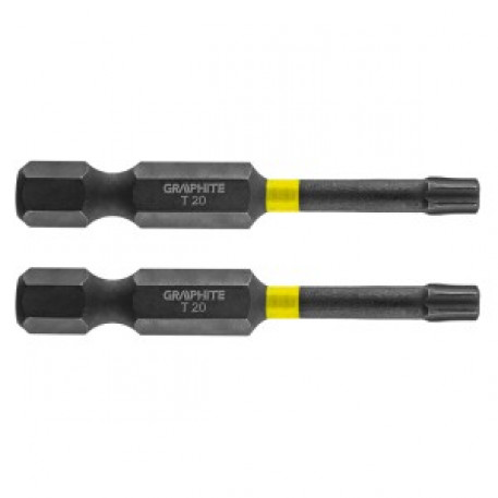 Set biti de impact GRAPHITE (Ref. 56H525) Tipul TX20, cu o lungime totala de 50 mm, este un varf robust conceput pentru lucrari cu cuplu mai mare cu surubelnite sau masini de gaurit cu impact. Fabricat din otel S2 de inalta calitate, care ofera flexibilitate si rezistenta sporita impotriva deteriorarilor mecanice. Zona de torsiune, care se roteste sub un cuplu ridicat, reduce transmiterea fortei, facand ca bitul sa fie mai rezistent la rupere si prelungindu-i de cateva ori durata de viata. Capatul de lucru al burghiului garanteaza o potrivire perfecta. Marca GRAPHITE ofera o gama larga de scule electrice pentru a satisface nevoile profesionistilor.