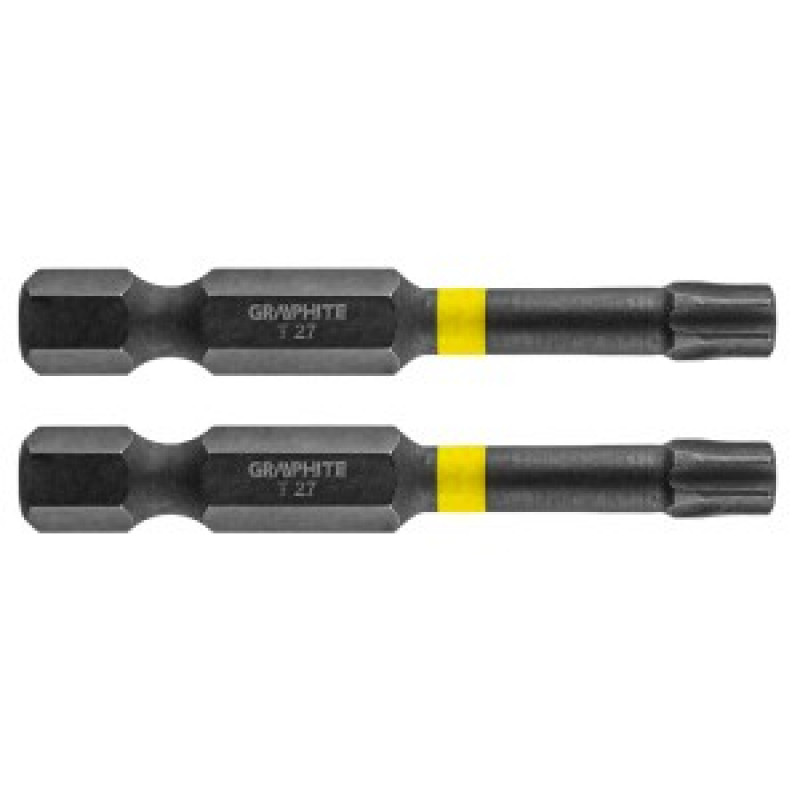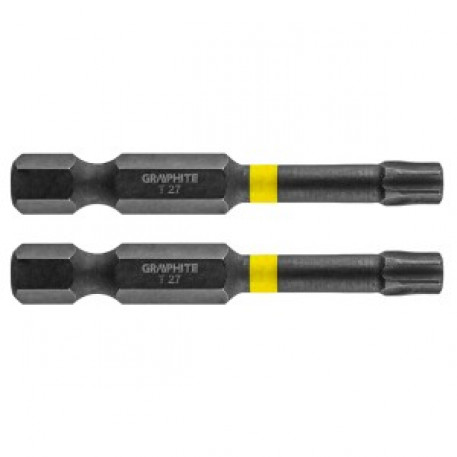 Set biti de impact GRAPHITE (Ref. 56H527) Tipul TX27, cu o lungime totala de 50 mm, este un burghiu robust conceput pentru aplicatii cu cuplu mai mare de torsiune cu ajutorul surubelnitelor sau al masinilor cu impact. Fabricat din otel S2 de inalta calitate, care ofera flexibilitate si rezistenta sporita impotriva deteriorarilor mecanice. Zona de torsiune, care se roteste sub un cuplu ridicat, reduce transmiterea fortei, facand ca bitul sa fie mai rezistent la rupere si prelungindu-i de cateva ori durata de viata. Capatul de lucru al burghiului garanteaza o potrivire perfecta. Marca GRAPHITE ofera o gama larga de scule electrice pentru a satisface nevoile profesionistilor.