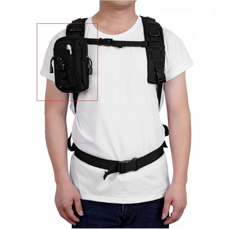 Poate fi agatat la cureaua pantalonilor cu ajutorul inchizatoarelor cu clichet
