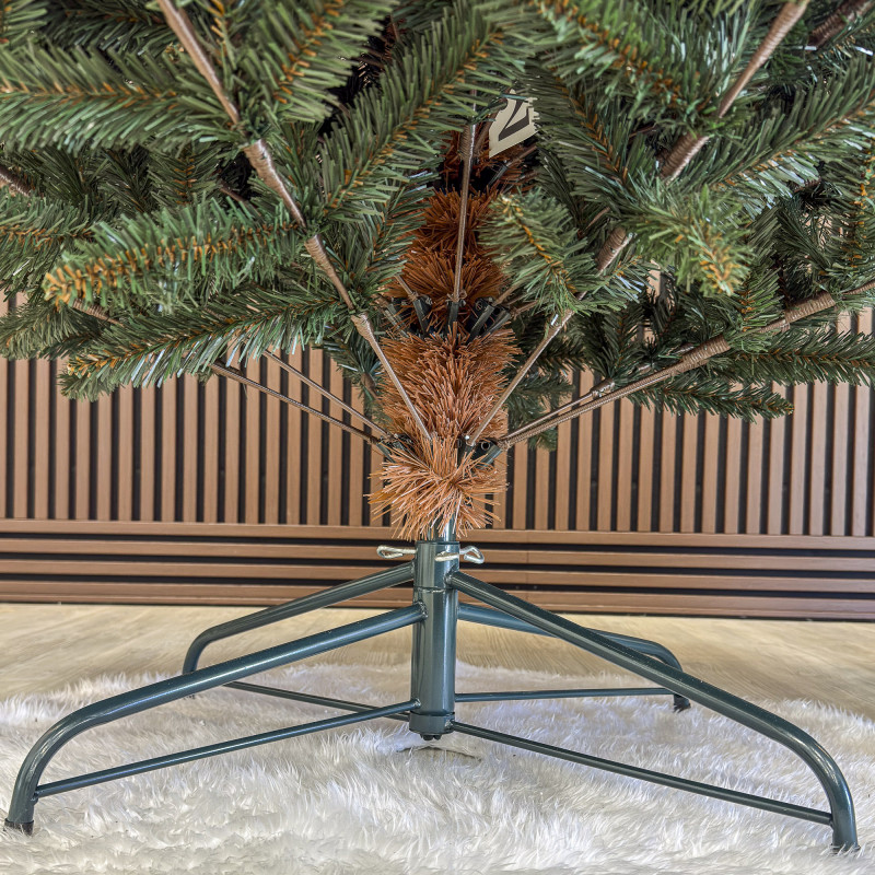 un element inseparabil al Craciunului – veti petrece aceasta perioada magica de iarna intr-o aura de bucurie si caldura. Ganditi-va doar cat de frumos vor arata decoratiunile – stralucitoare, presarate cu sclipici, incalzind interiorul. Chiar si oamenii care nu impartasesc entuziasmul de Craciun recunosc ca un brad de Craciun impodobit frumos creeaza o atmosfera aparte. Cel mai mare avantaj al bradului nostru de Craciun este numarul mare de ramuri dens aranjate. Datorita densitatii si elegantei sale captivante, nu necesita prezenta a numeroase decoratiuni, fiind cu adevarat un decor grozav al oricarui interior! Etajul cel mai de jos al pomului de Craciun este la inaltimea potrivita, astfel incat sa puteti pune cu usurinta cadourile de Craciun sub el.Crengile pot fi indoite cu usurinta in diferite directii pentru a modela diferitele ramuri ale pomului si a le da forme diferite. Crengutele individuale au finaluri realiste si variate, iar niciuna nu este taiata intr-un mod artificial si inestetic. Culoarea lor intr-un mod extrem de realist imita culoarea reala a coniferelor si nu se estompeaza in timp. Sarma ascunsa cu grija nu se vede prin ace si, in acelasi timp, este suficient de groasa si rezistenta pentru ca bradul sa va serveasca ani de zile! Ace din folie PVC, puternice si durabile, sunt in acelasi timp extrem de placute la atingere. Deoarece bradul de Craciun