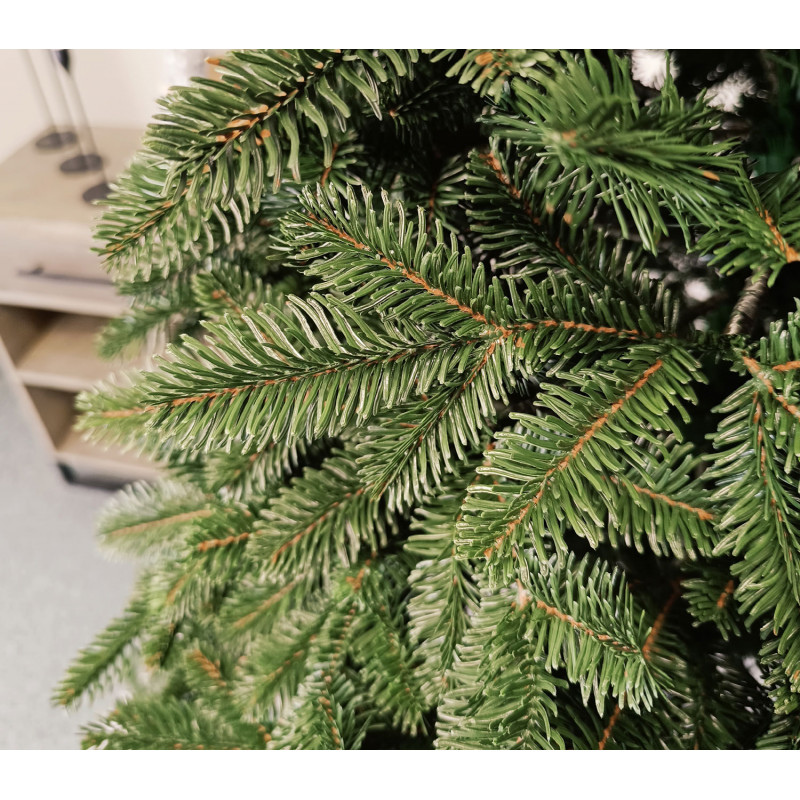 un element inseparabil al Craciunului – veti petrece aceasta perioada magica de iarna intr-o aura de bucurie si caldura. Ganditi-va doar cat de frumos vor arata decoratiunile – stralucitoare, presarate cu sclipici, incalzind interiorul. Chiar si oamenii care nu impartasesc entuziasmul de Craciun recunosc ca un brad de Craciun impodobit frumos creeaza o atmosfera aparte. Cel mai mare avantaj al bradului nostru de Craciun este numarul mare de ramuri dens aranjate. Datorita densitatii si elegantei sale captivante, nu necesita prezenta a numeroase decoratiuni, fiind cu adevarat un decor grozav al oricarui interior! Etajul cel mai de jos al pomului de Craciun este la inaltimea potrivita, astfel incat sa puteti pune cu usurinta cadourile de Craciun sub el.Crengile pot fi indoite cu usurinta in diferite directii pentru a modela diferitele ramuri ale pomului si a le da forme diferite. Crengutele individuale au finaluri realiste si variate, iar niciuna nu este taiata intr-un mod artificial si inestetic. Culoarea lor intr-un mod extrem de realist imita culoarea reala a coniferelor si nu se estompeaza in timp. Sarma ascunsa cu grija nu se vede prin ace si, in acelasi timp, este suficient de groasa si rezistenta pentru ca bradul sa va serveasca ani de zile! Ace din folie PVC, puternice si durabile, sunt in acelasi timp extrem de placute la atingere. Deoarece bradul de Craciun – spre deosebire de copacii adevarati