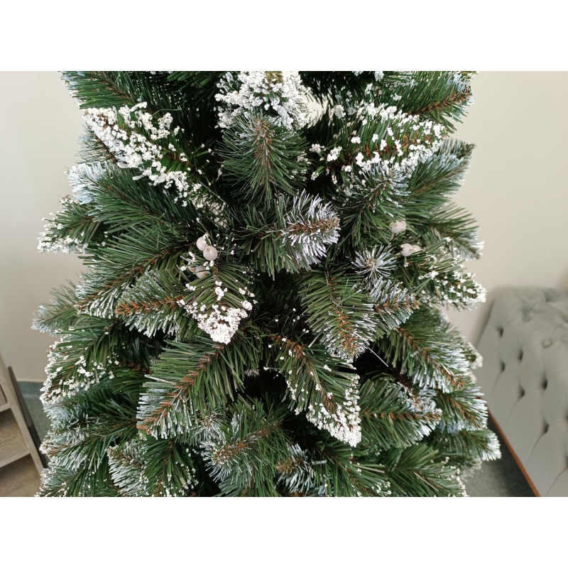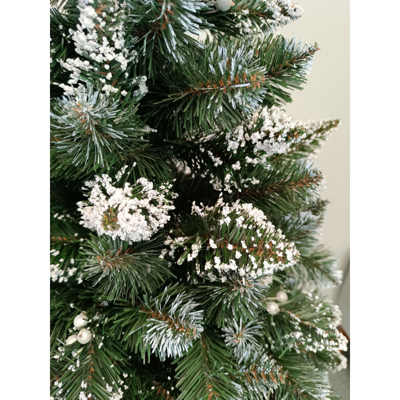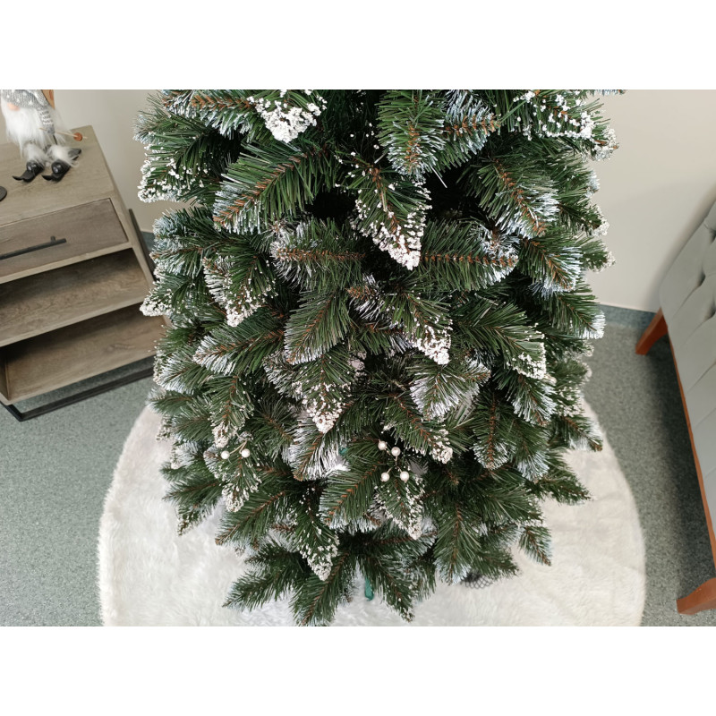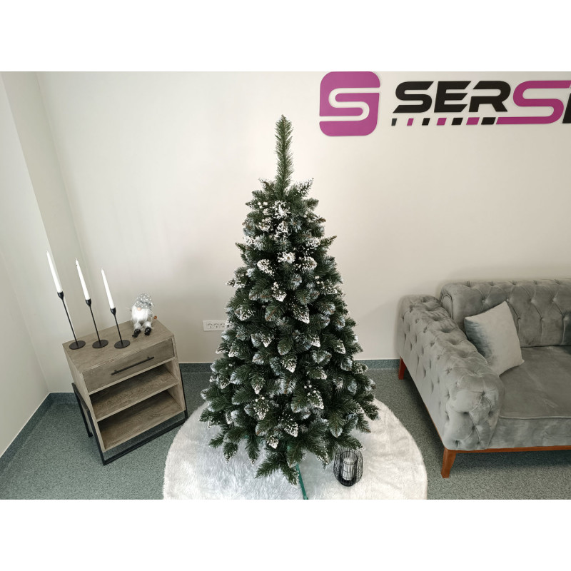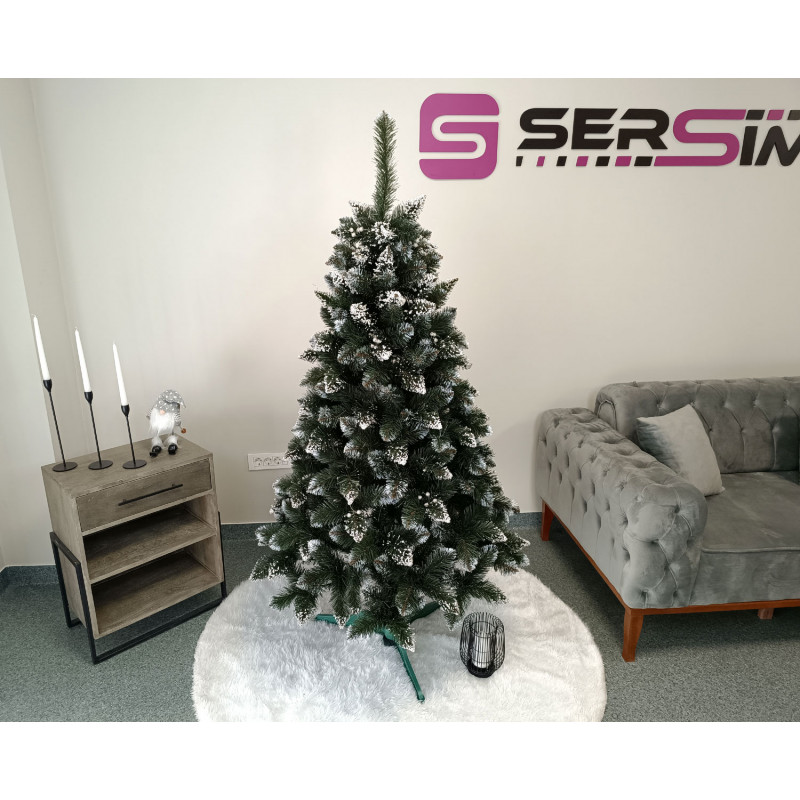 un element inseparabil al Craciunului – veti petrece aceasta perioada magica de iarna intr-o aura de bucurie si caldura. Ganditi-va doar cat de frumos vor arata decoratiunile – stralucitoare, presarate cu sclipici, incalzind interiorul. Chiar si oamenii care nu impartasesc entuziasmul de Craciun recunosc ca un brad de Craciun impodobit frumos creeaza o atmosfera aparte. Cel mai mare avantaj al bradului nostru de Craciun este numarul mare de ramuri dens aranjate. Datorita densitatii si elegantei sale captivante, nu necesita prezenta a numeroase decoratiuni, fiind cu adevarat un decor grozav al oricarui interior! Etajul cel mai de jos al pomului de Craciun este la inaltimea potrivita, astfel incat sa puteti pune cu usurinta cadourile de Craciun sub el.Crengile pot fi indoite cu usurinta in diferite directii pentru a modela diferitele ramuri ale pomului si a le da forme diferite. Crengutele individuale au finaluri realiste si variate, iar niciuna nu este taiata intr-un mod artificial si inestetic. Culoarea lor intr-un mod extrem de realist imita culoarea reala a coniferelor si nu se estompeaza in timp. Sarma ascunsa cu grija nu se vede prin ace si, in acelasi timp, este suficient de groasa si rezistenta pentru ca bradul sa va serveasca ani de zile! Ace din folie PVC, puternice si durabile, sunt in acelasi timp extrem de placute la atingere. Deoarece bradul de Craciun – spre deosebire de copacii adevarati