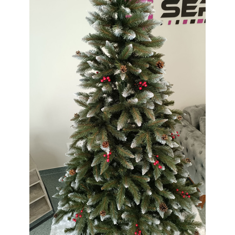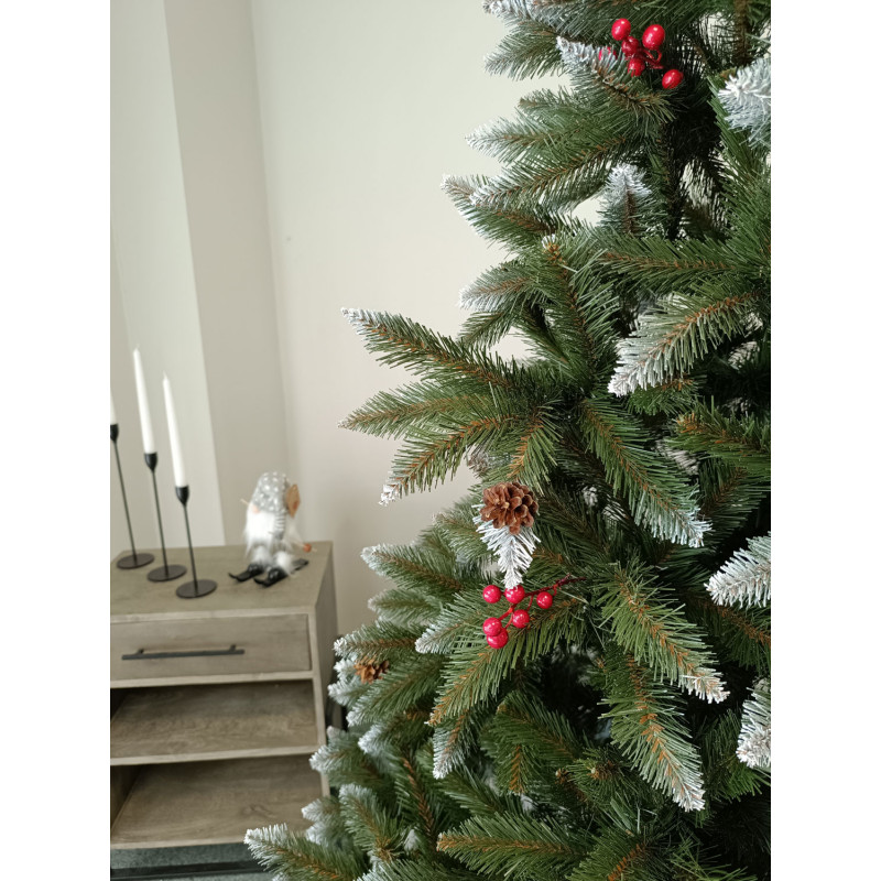 un element inseparabil al Craciunului – veti petrece aceasta perioada magica de iarna intr-o aura de bucurie si caldura. Ganditi-va doar cat de frumos vor arata decoratiunile – stralucitoare, presarate cu sclipici, incalzind interiorul. Chiar si oamenii care nu impartasesc entuziasmul de Craciun recunosc ca un brad de Craciun impodobit frumos creeaza o atmosfera aparte. Cel mai mare avantaj al bradului nostru de Craciun este numarul mare de ramuri dens aranjate. Datorita densitatii si elegantei sale captivante, nu necesita prezenta a numeroase decoratiuni, fiind cu adevarat un decor grozav al oricarui interior! Etajul cel mai de jos al pomului de Craciun este la inaltimea potrivita, astfel incat sa puteti pune cu usurinta cadourile de Craciun sub el.Crengile pot fi indoite cu usurinta in diferite directii pentru a modela diferitele ramuri ale pomului si a le da forme diferite. Crengutele individuale au finaluri realiste si variate, iar niciuna nu este taiata intr-un mod artificial si inestetic. Culoarea lor intr-un mod extrem de realist imita culoarea reala a coniferelor si nu se estompeaza in timp. Sarma ascunsa cu grija nu se vede prin ace si, in acelasi timp, este suficient de groasa si rezistenta pentru ca bradul sa va serveasca ani de zile! Ace din folie PVC, puternice si durabile, sunt in acelasi timp extrem de placute la atingere. Deoarece bradul de Craciun – spre deosebire de copacii adevarati