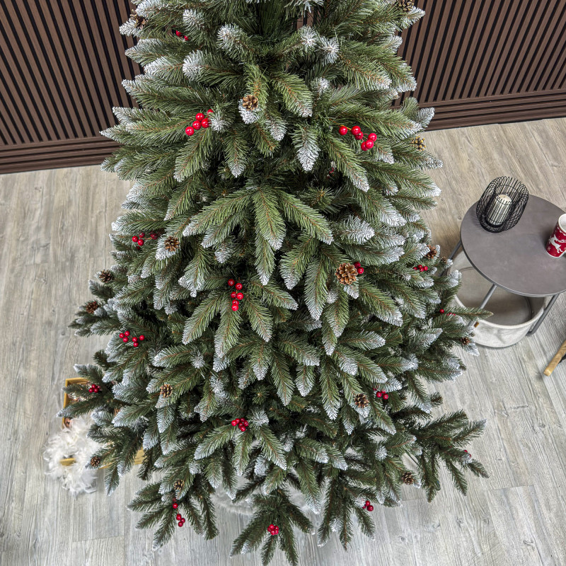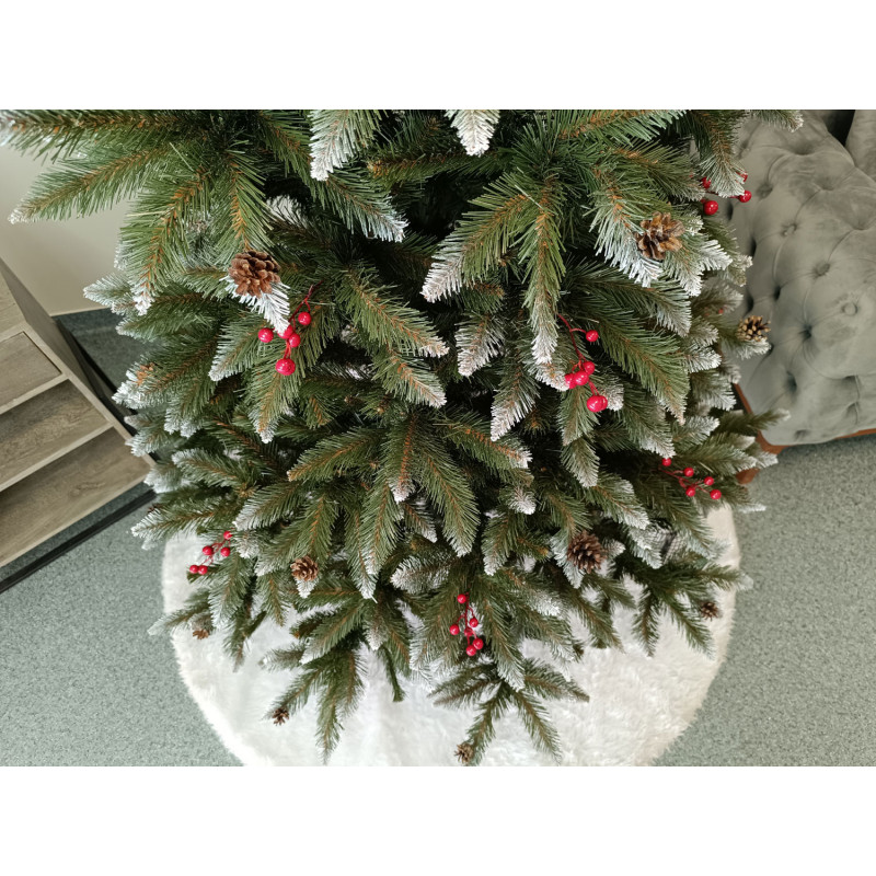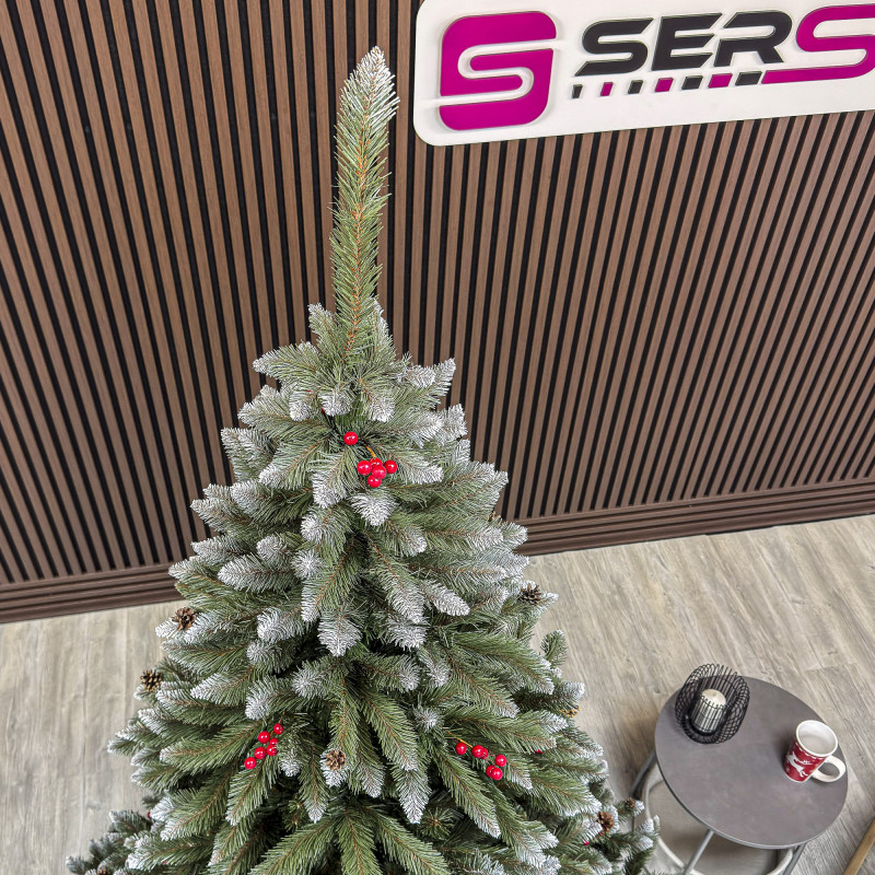 un element inseparabil al Craciunului – veti petrece aceasta perioada magica de iarna intr-o aura de bucurie si caldura. Ganditi-va doar cat de frumos vor arata decoratiunile – stralucitoare, presarate cu sclipici, incalzind interiorul. Chiar si oamenii care nu impartasesc entuziasmul de Craciun recunosc ca un brad de Craciun impodobit frumos creeaza o atmosfera aparte. Cel mai mare avantaj al bradului nostru de Craciun este numarul mare de ramuri dens aranjate. Datorita densitatii si elegantei sale captivante, nu necesita prezenta a numeroase decoratiuni, fiind cu adevarat un decor grozav al oricarui interior! Etajul cel mai de jos al pomului de Craciun este la inaltimea potrivita, astfel incat sa puteti pune cu usurinta cadourile de Craciun sub el.Crengile pot fi indoite cu usurinta in diferite directii pentru a modela diferitele ramuri ale pomului si a le da forme diferite. Crengutele individuale au finaluri realiste si variate, iar niciuna nu este taiata intr-un mod artificial si inestetic. Culoarea lor intr-un mod extrem de realist imita culoarea reala a coniferelor si nu se estompeaza in timp. Sarma ascunsa cu grija nu se vede prin ace si, in acelasi timp, este suficient de groasa si rezistenta pentru ca bradul sa va serveasca ani de zile! Ace din folie PVC, puternice si durabile, sunt in acelasi timp extrem de placute la atingere. Deoarece bradul de Craciun – spre deosebire de copacii adevarati