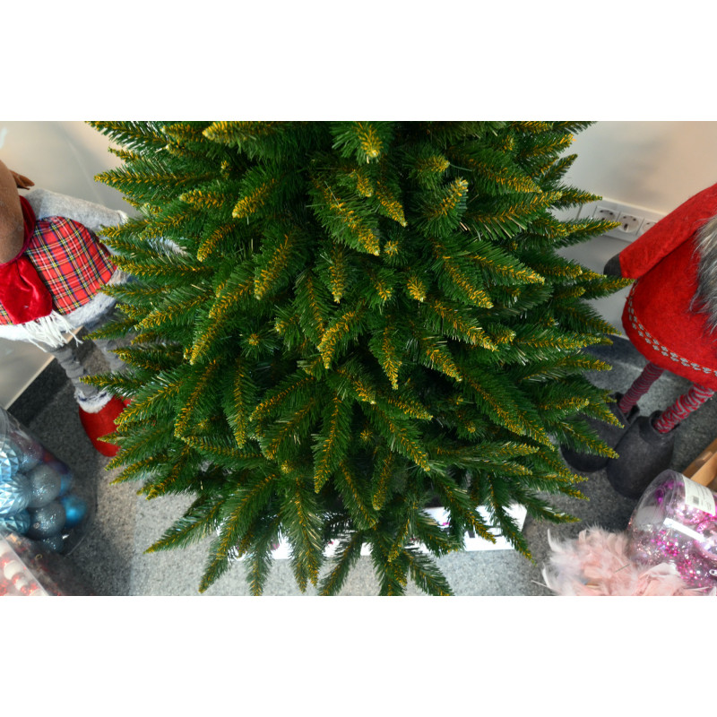 Cu bradul Christmas Deluxe by Sersimo® - un element inseparabil al Craciunului - veti petrece aceasta perioada magica de iarna intr-o aura de bucurie si caldura. Ganditi-va doar cat de frumos vor arata decoratiunile - stralucitoare, presarate cu sclipici, incalzind interiorul. Chiar si oamenii care nu impartasesc entuziasmul de Craciun recunosc ca un brad de Craciun impodobit frumos creeaza o atmosfera aparte. Cel mai mare avantaj al bradului nostru de Craciun este numarul mare de ramuri dens aranjate. Datorita densitatii si elegantei sale captivante, nu necesita prezenta a numeroase decoratiuni, fiind cu adevarat un decor grozav al oricarui interior! Etajul cel mai de jos al pomului de Craciun este la inaltimea potrivita, astfel incat sa puteti pune cu usurinta cadourile de Craciun sub el.Crengile pot fi indoite cu usurinta in diferite directii pentru a modela diferitele ramuri ale pomului si a le da forme diferite. Crengutele individuale au finaluri realiste si variate, iar niciuna nu este taiata intr-un mod artificial si inestetic. Culoarea lor intr-un mod extrem de realist imita culoarea reala a coniferelor si nu se estompeaza in timp. Sarma ascunsa cu grija nu se vede prin ace si, in acelasi timp, este suficient de groasa si rezistenta pentru ca bradul sa va serveasca ani de zile! Ace din folie PVC, puternice si durabile, sunt in acelasi timp extrem de placute la atingere. Deoarece bradul de Craciun - spre deosebire de copacii adevarati - nu ii pierde, nu va fi nevoie sa aspirati camera in mod regulat. Mai mult decat atat, acele sunt distribuite uniform pe toata lungimea ramurii, garantand astfel un efect vizual de densitate, fara goluri.