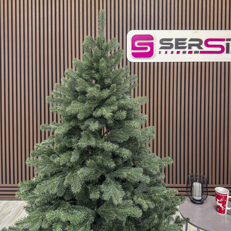 un element inseparabil al Craciunului – veti petrece aceasta perioada magica de iarna intr-o aura de bucurie si caldura. Ganditi-va doar cat de frumos vor arata decoratiunile – stralucitoare, presarate cu sclipici, incalzind interiorul. Chiar si oamenii care nu impartasesc entuziasmul de Craciun recunosc ca un brad de Craciun impodobit frumos creeaza o atmosfera aparte. Cel mai mare avantaj al bradului nostru de Craciun este numarul mare de ramuri dens aranjate. Datorita densitatii si elegantei sale captivante, nu necesita prezenta a numeroase decoratiuni, fiind cu adevarat un decor grozav al oricarui interior! Etajul cel mai de jos al pomului de Craciun este la inaltimea potrivita, astfel incat sa puteti pune cu usurinta cadourile de Craciun sub el.Crengile pot fi indoite cu usurinta in diferite directii pentru a modela diferitele ramuri ale pomului si a le da forme diferite. Crengutele individuale au finaluri realiste si variate, iar niciuna nu este taiata intr-un mod artificial si inestetic. Culoarea lor intr-un mod extrem de realist imita culoarea reala a coniferelor si nu se estompeaza in timp. Sarma ascunsa cu grija nu se vede prin ace si, in acelasi timp, este suficient de groasa si rezistenta pentru ca bradul sa va serveasca ani de zile! Ace din folie PVC, puternice si durabile, sunt in acelasi timp extrem de placute la atingere. Deoarece bradul de Craciun – spre deosebire de copacii adevarati