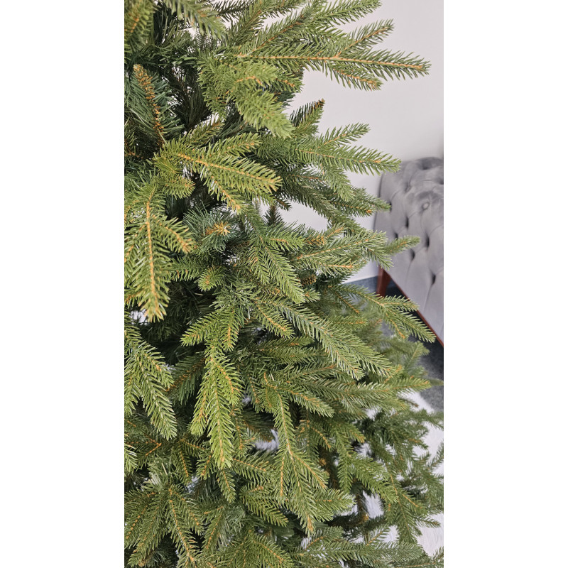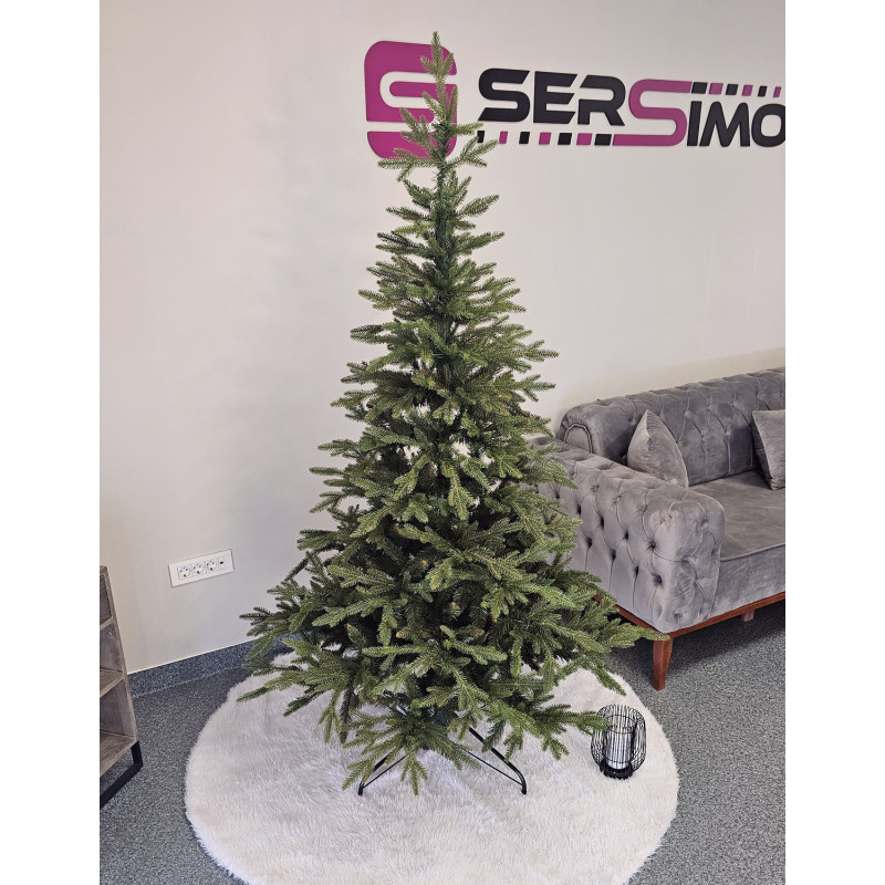 Diametrul (latimea la baza in cel mai lat punct): 120cm – Ramuri 3 D (din plastic) predominante.– Ramuri 2 D in partea din spate, mai putin vizibile, cu rolul de a da volum bradului