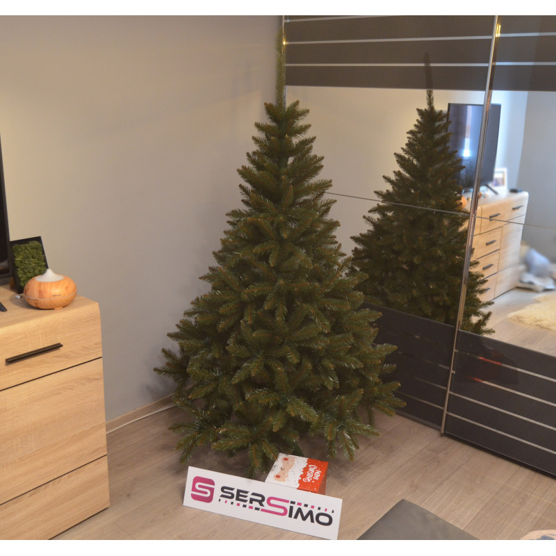 Brad artificial Deluxe Christmas 180cm cu suport inclus Acesti brazi au un aspect ultra-realist si sunt greu de distins in comparatie cu cei naturali. Ramurile lor sunt dens stratificate si mentin toate decoratiunile de Craciun la inaltime. Ramurile arata foarte bine chiar si fara decoratiuni, sunt realizati din materiale calitative si ating cele inalte standarde de siguranta ale Uniunii Europene.Dispune de ramuri bogate de culoare verde inchis, foarte apropiat de culoarea naturala a brazilor. Ramurile ramificate permit modelarea si impodobirea acestuia dupa preferintele fiecaruia. Pomii pot fi rapid ansamblati si dezansamblati, sunt usor de intretinut si sigur va vor face casa sa radieze de frumusete si a spirit de Craciun. Inaltimea totala a bradului, impreuna cu suportul este de 180 cm. Diametrul aproximativ este de 120cm (dar poate diferi cu plus/minus 10cm in functie de modul in care sunt arantaje ramurile)Bradul este format din crengi care pot fi modelate si aranjate. Se poate monta in cca. 30 minute si este practic, ecologic si durabil. Este un brad foarte bogat, cu ramuri ce imita foarte bine bradul natural atat prin culoare cat si prin forma/textura.