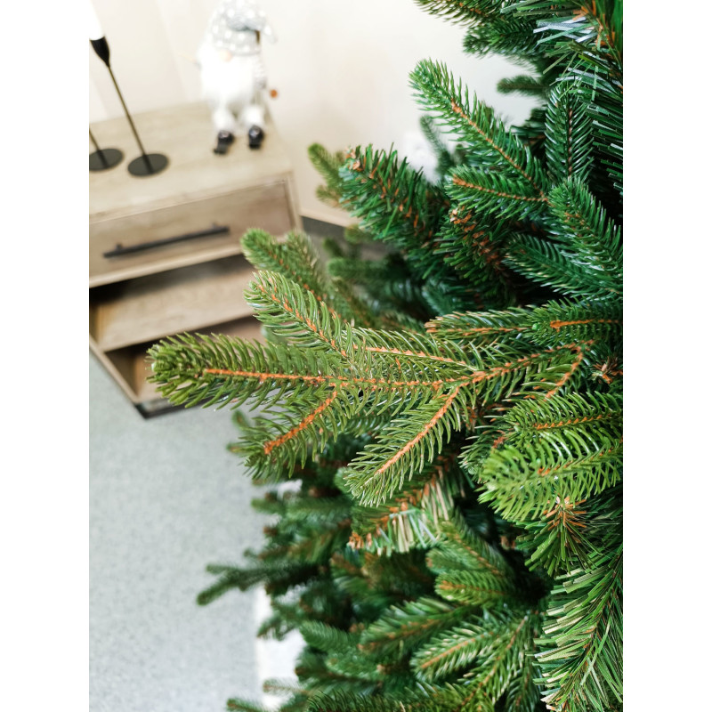 un element inseparabil al Craciunului – veti petrece aceasta perioada magica de iarna intr-o aura de bucurie si caldura. Ganditi-va doar cat de frumos vor arata decoratiunile – stralucitoare, presarate cu sclipici, incalzind interiorul. Chiar si oamenii care nu impartasesc entuziasmul de Craciun recunosc ca un brad de Craciun impodobit frumos creeaza o atmosfera aparte. Cel mai mare avantaj al bradului nostru de Craciun este numarul mare de ramuri dens aranjate. Datorita densitatii si elegantei sale captivante, nu necesita prezenta a numeroase decoratiuni, fiind cu adevarat un decor grozav al oricarui interior! Etajul cel mai de jos al pomului de Craciun este la inaltimea potrivita, astfel incat sa puteti pune cu usurinta cadourile de Craciun sub el.Crengile pot fi indoite cu usurinta in diferite directii pentru a modela diferitele ramuri ale pomului si a le da forme diferite. Crengutele individuale au finaluri realiste si variate, iar niciuna nu este taiata intr-un mod artificial si inestetic. Culoarea lor intr-un mod extrem de realist imita culoarea reala a coniferelor si nu se estompeaza in timp. Sarma ascunsa cu grija nu se vede prin ace si, in acelasi timp, este suficient de groasa si rezistenta pentru ca bradul sa va serveasca ani de zile! Ace din folie PVC, puternice si durabile, sunt in acelasi timp extrem de placute la atingere. Deoarece bradul de Craciun – spre deosebire de copacii adevarati