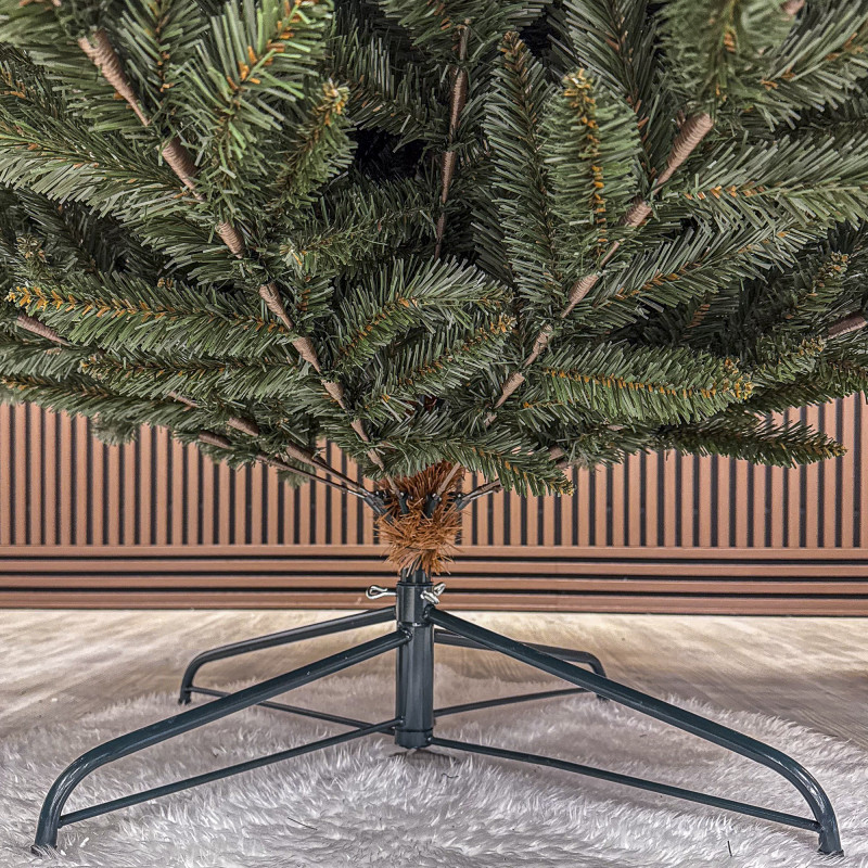 un element inseparabil al Craciunului – veti petrece aceasta perioada magica de iarna intr-o aura de bucurie si caldura. Ganditi-va doar cat de frumos vor arata decoratiunile – stralucitoare, presarate cu sclipici, incalzind interiorul. Chiar si oamenii care nu impartasesc entuziasmul de Craciun recunosc ca un brad de Craciun impodobit frumos creeaza o atmosfera aparte. Cel mai mare avantaj al bradului nostru de Craciun este numarul mare de ramuri dens aranjate. Datorita densitatii si elegantei sale captivante, nu necesita prezenta a numeroase decoratiuni, fiind cu adevarat un decor grozav al oricarui interior! Etajul cel mai de jos al pomului de Craciun este la inaltimea potrivita, astfel incat sa puteti pune cu usurinta cadourile de Craciun sub el.Crengile pot fi indoite cu usurinta in diferite directii pentru a modela diferitele ramuri ale pomului si a le da forme diferite. Crengutele individuale au finaluri realiste si variate, iar niciuna nu este taiata intr-un mod artificial si inestetic. Culoarea lor intr-un mod extrem de realist imita culoarea reala a coniferelor si nu se estompeaza in timp. Sarma ascunsa cu grija nu se vede prin ace si, in acelasi timp, este suficient de groasa si rezistenta pentru ca bradul sa va serveasca ani de zile! Ace din folie PVC, puternice si durabile, sunt in acelasi timp extrem de placute la atingere. Deoarece bradul de Craciun – spre deosebire de copacii adevarati