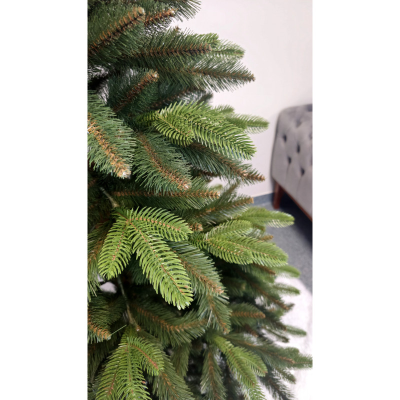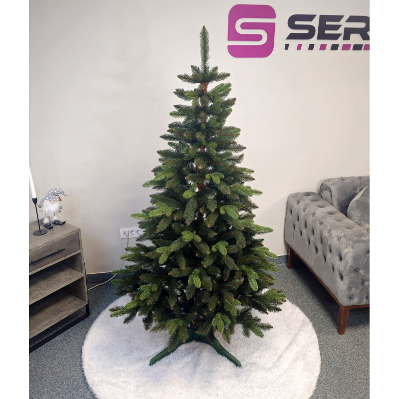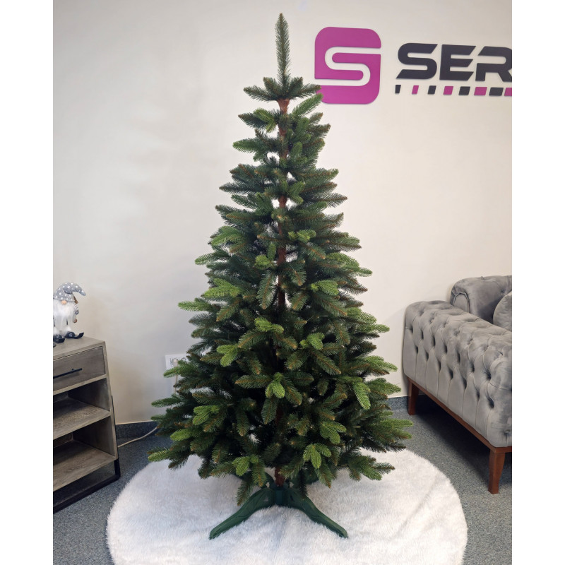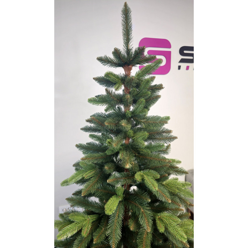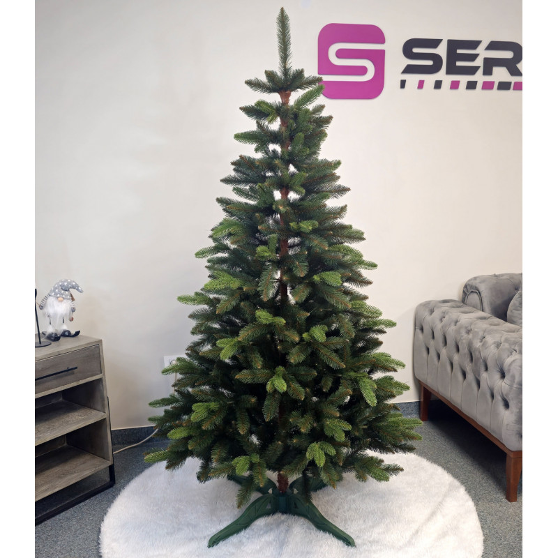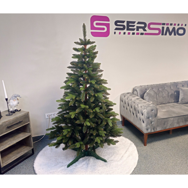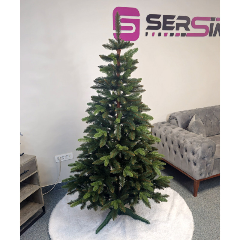 Imagine reala de prezentare pentru modelul Victoria Special, 2 D+3 D, varianta 180cm PARAMETRII: - Inaltimea totala a bradului (dimensiune masurata de la podea pana in varf, cu tot cu suport): 180cm - Diametrul (latimea la baza in cel mai lat punct): 122cm -