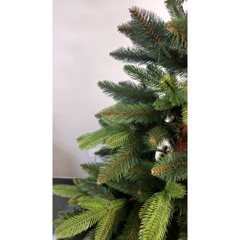 un element inseparabil al Craciunului – veti petrece aceasta perioada magica de iarna intr-o aura de bucurie si caldura. Ganditi-va doar cat de frumos vor arata decoratiunile – stralucitoare, presarate cu sclipici, incalzind interiorul. Chiar si oamenii care nu impartasesc entuziasmul de Craciun recunosc ca un brad de Craciun impodobit frumos creeaza o atmosfera aparte. Cel mai mare avantaj al bradului nostru de Craciun este numarul mare de ramuri dens aranjate. Datorita densitatii si elegantei sale captivante, nu necesita prezenta a numeroase decoratiuni, fiind cu adevarat un decor grozav al oricarui interior! Etajul cel mai de jos al pomului de Craciun este la inaltimea potrivita, astfel incat sa puteti pune cu usurinta cadourile de Craciun sub el.Crengile pot fi indoite cu usurinta in diferite directii pentru a modela diferitele ramuri ale pomului si a le da forme diferite. Crengutele individuale au finaluri realiste si variate, iar niciuna nu este taiata intr-un mod artificial si inestetic. Culoarea lor intr-un mod extrem de realist imita culoarea reala a coniferelor si nu se estompeaza in timp. Sarma ascunsa cu grija nu se vede prin ace si, in acelasi timp, este suficient de groasa si rezistenta pentru ca bradul sa va serveasca ani de zile! Ace din folie PVC, puternice si durabile, sunt in acelasi timp extrem de placute la atingere. Deoarece bradul de Craciun – spre deosebire de copacii adevarati