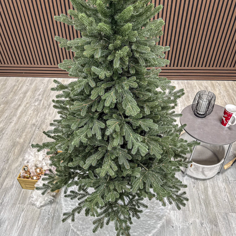 un element inseparabil al Craciunului – veti petrece aceasta perioada magica de iarna intr-o aura de bucurie si caldura. Ganditi-va doar cat de frumos vor arata decoratiunile – stralucitoare, presarate cu sclipici, incalzind interiorul. Chiar si oamenii care nu impartasesc entuziasmul de Craciun recunosc ca un brad de Craciun impodobit frumos creeaza o atmosfera aparte. Cel mai mare avantaj al bradului nostru de Craciun este numarul mare de ramuri dens aranjate. Datorita densitatii si elegantei sale captivante, nu necesita prezenta a numeroase decoratiuni, fiind cu adevarat un decor grozav al oricarui interior! Etajul cel mai de jos al pomului de Craciun este la inaltimea potrivita, astfel incat sa puteti pune cu usurinta cadourile de Craciun sub el.Crengile pot fi indoite cu usurinta in diferite directii pentru a modela diferitele ramuri ale pomului si a le da forme diferite. Crengutele individuale au finaluri realiste si variate, iar niciuna nu este taiata intr-un mod artificial si inestetic. Culoarea lor intr-un mod extrem de realist imita culoarea reala a coniferelor si nu se estompeaza in timp. Sarma ascunsa cu grija nu se vede prin ace si, in acelasi timp, este suficient de groasa si rezistenta pentru ca bradul sa va serveasca ani de zile! Ace din folie PVC, puternice si durabile, sunt in acelasi timp extrem de placute la atingere. Deoarece bradul de Craciun – spre deosebire de copacii adevarati