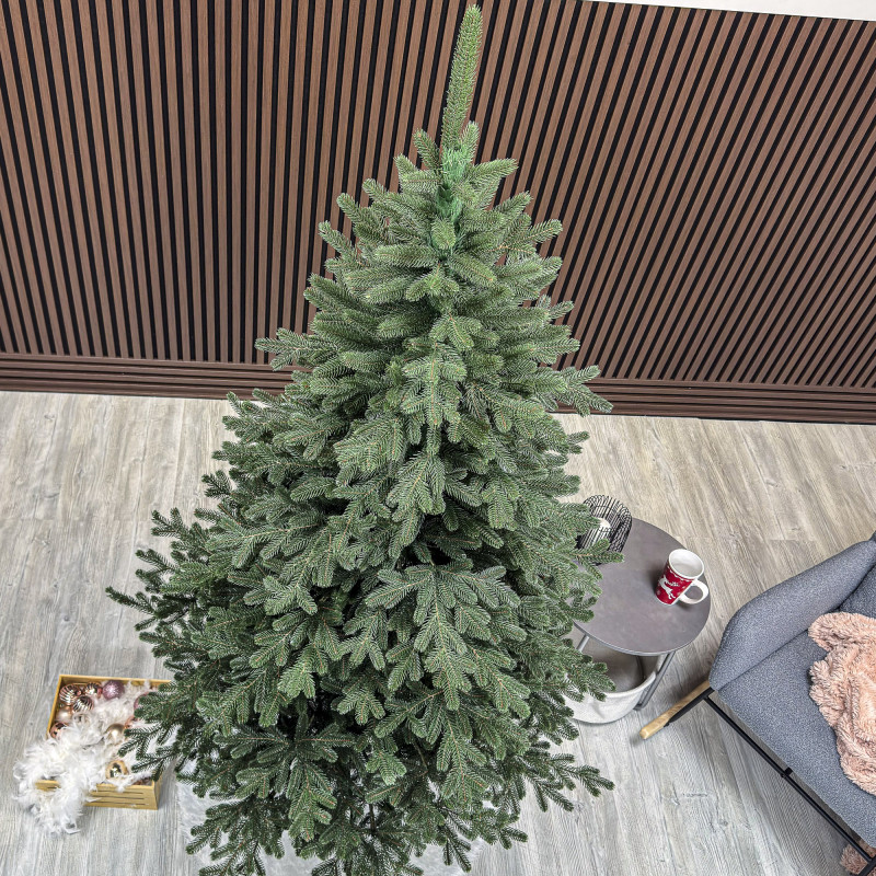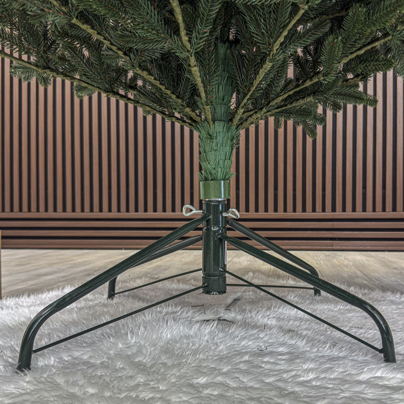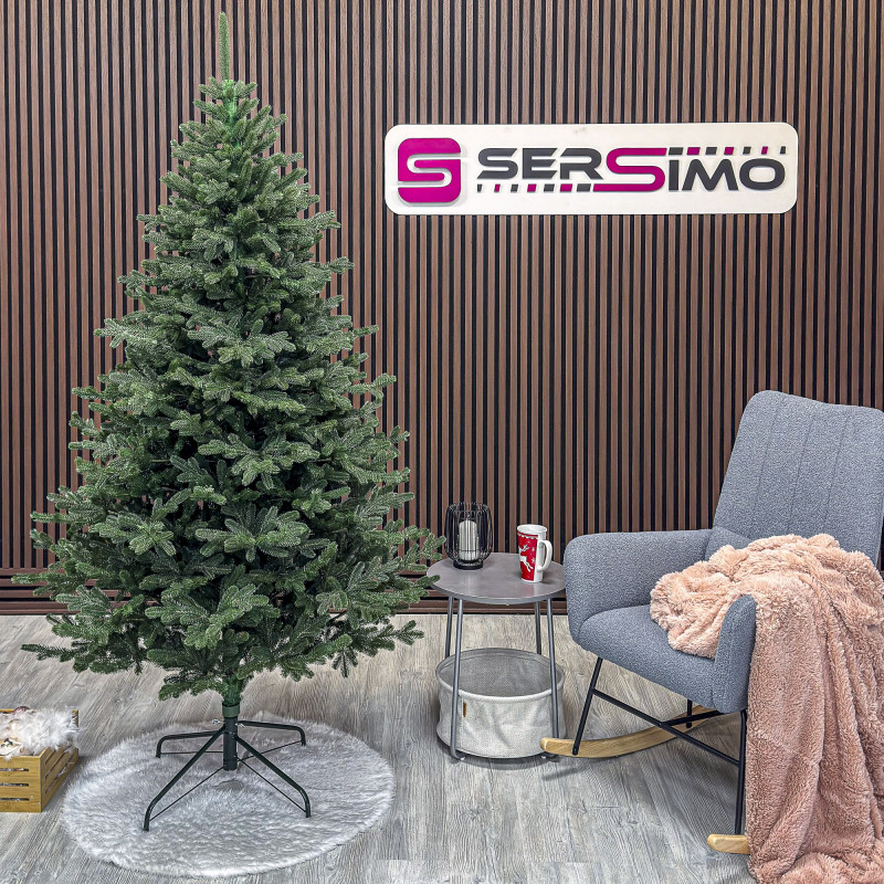 un element inseparabil al Craciunului – veti petrece aceasta perioada magica de iarna intr-o aura de bucurie si caldura. Ganditi-va doar cat de frumos vor arata decoratiunile – stralucitoare, presarate cu sclipici, incalzind interiorul. Chiar si oamenii care nu impartasesc entuziasmul de Craciun recunosc ca un brad de Craciun impodobit frumos creeaza o atmosfera aparte. Cel mai mare avantaj al bradului nostru de Craciun este numarul mare de ramuri dens aranjate. Datorita densitatii si elegantei sale captivante, nu necesita prezenta a numeroase decoratiuni, fiind cu adevarat un decor grozav al oricarui interior! Etajul cel mai de jos al pomului de Craciun este la inaltimea potrivita, astfel incat sa puteti pune cu usurinta cadourile de Craciun sub el.Crengile pot fi indoite cu usurinta in diferite directii pentru a modela diferitele ramuri ale pomului si a le da forme diferite. Crengutele individuale au finaluri realiste si variate, iar niciuna nu este taiata intr-un mod artificial si inestetic. Culoarea lor intr-un mod extrem de realist imita culoarea reala a coniferelor si nu se estompeaza in timp. Sarma ascunsa cu grija nu se vede prin ace si, in acelasi timp, este suficient de groasa si rezistenta pentru ca bradul sa va serveasca ani de zile! Ace din folie PVC, puternice si durabile, sunt in acelasi timp extrem de placute la atingere. Deoarece bradul de Craciun – spre deosebire de copacii adevarati