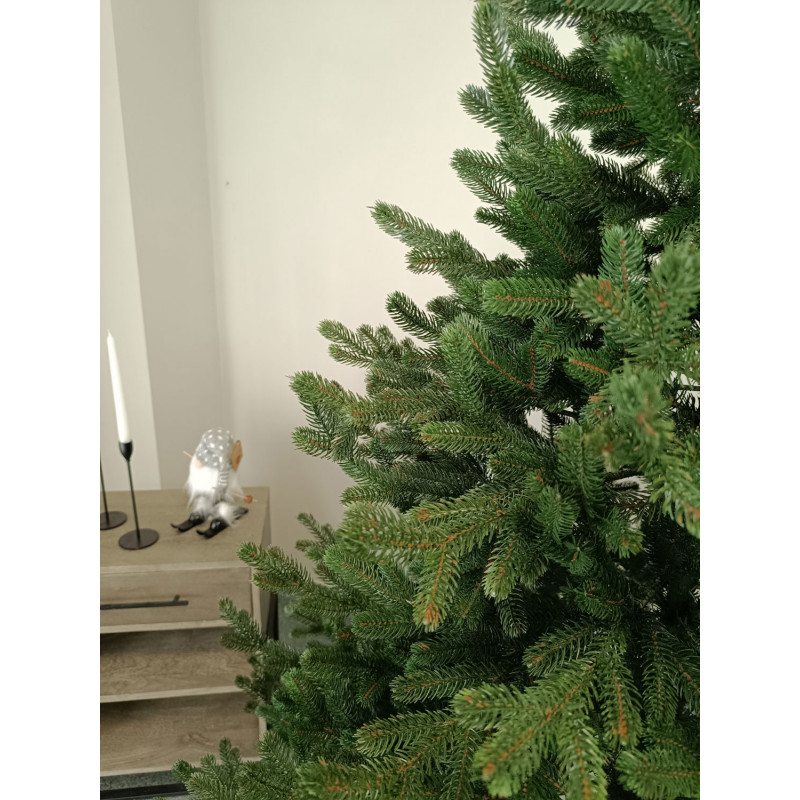 un element inseparabil al Craciunului – veti petrece aceasta perioada magica de iarna intr-o aura de bucurie si caldura. Ganditi-va doar cat de frumos vor arata decoratiunile – stralucitoare, presarate cu sclipici, incalzind interiorul. Chiar si oamenii care nu impartasesc entuziasmul de Craciun recunosc ca un brad de Craciun impodobit frumos creeaza o atmosfera aparte. Cel mai mare avantaj al bradului nostru de Craciun este numarul mare de ramuri dens aranjate. Datorita densitatii si elegantei sale captivante, nu necesita prezenta a numeroase decoratiuni, fiind cu adevarat un decor grozav al oricarui interior! Etajul cel mai de jos al pomului de Craciun este la inaltimea potrivita, astfel incat sa puteti pune cu usurinta cadourile de Craciun sub el.Crengile pot fi indoite cu usurinta in diferite directii pentru a modela diferitele ramuri ale pomului si a le da forme diferite. Crengutele individuale au finaluri realiste si variate, iar niciuna nu este taiata intr-un mod artificial si inestetic. Culoarea lor intr-un mod extrem de realist imita culoarea reala a coniferelor si nu se estompeaza in timp. Sarma ascunsa cu grija nu se vede prin ace si, in acelasi timp, este suficient de groasa si rezistenta pentru ca bradul sa va serveasca ani de zile! Ace din folie PVC, puternice si durabile, sunt in acelasi timp extrem de placute la atingere. Deoarece bradul de Craciun – spre deosebire de copacii adevarati
