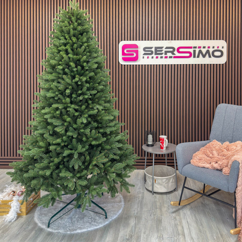 un element inseparabil al Craciunului – veti petrece aceasta perioada magica de iarna intr-o aura de bucurie si caldura. Ganditi-va doar cat de frumos vor arata decoratiunile – stralucitoare, presarate cu sclipici, incalzind interiorul. Chiar si oamenii care nu impartasesc entuziasmul de Craciun recunosc ca un brad de Craciun impodobit frumos creeaza o atmosfera aparte. Cel mai mare avantaj al bradului nostru de Craciun este numarul mare de ramuri dens aranjate. Datorita densitatii si elegantei sale captivante, nu necesita prezenta a numeroase decoratiuni, fiind cu adevarat un decor grozav al oricarui interior! Etajul cel mai de jos al pomului de Craciun este la inaltimea potrivita, astfel incat sa puteti pune cu usurinta cadourile de Craciun sub el.Crengile pot fi indoite cu usurinta in diferite directii pentru a modela diferitele ramuri ale pomului si a le da forme diferite. Crengutele individuale au finaluri realiste si variate, iar niciuna nu este taiata intr-un mod artificial si inestetic. Culoarea lor intr-un mod extrem de realist imita culoarea reala a coniferelor si nu se estompeaza in timp. Sarma ascunsa cu grija nu se vede prin ace si, in acelasi timp, este suficient de groasa si rezistenta pentru ca bradul sa va serveasca ani de zile! Ace din folie PVC, puternice si durabile, sunt in acelasi timp extrem de placute la atingere. Deoarece bradul de Craciun