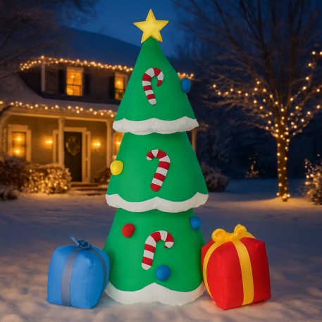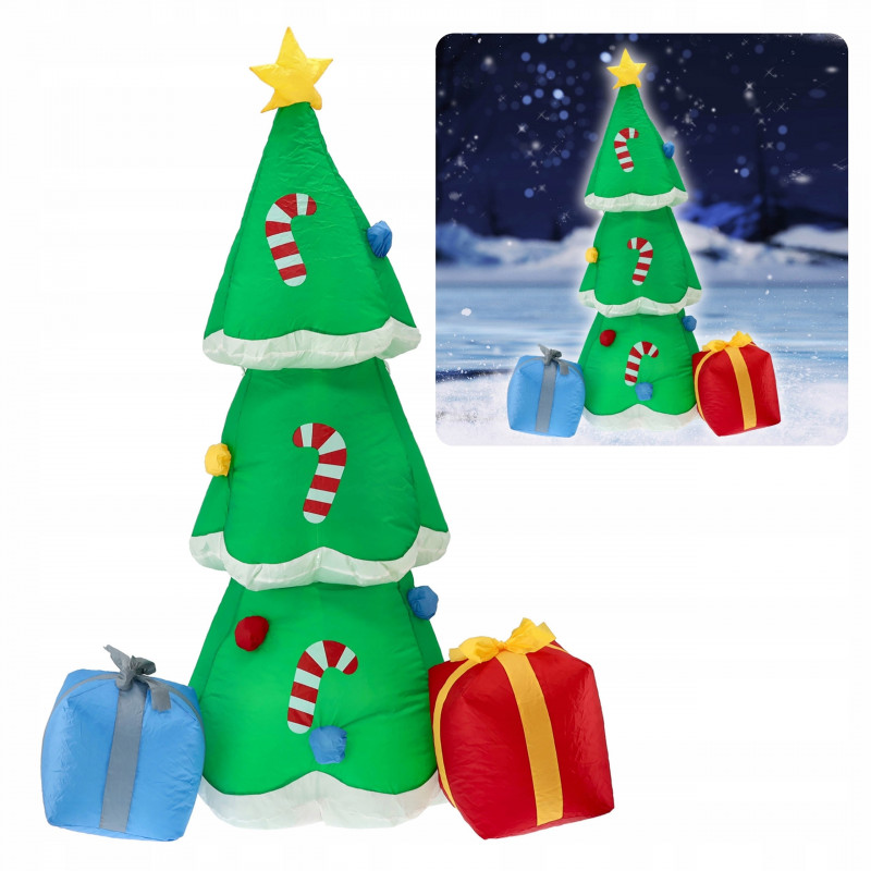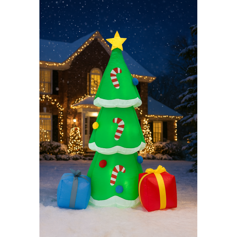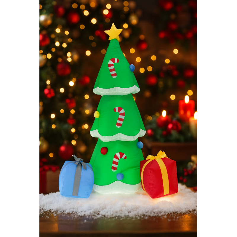 Scurta descriere Brad gonflabil cu LED, perfect pentru decorul de sarbatori in casa, balcon sau gradina. Se monteaza rapid datorita compresorului integrat, iar materialul rezistent permite utilizarea in siguranta la exterior.