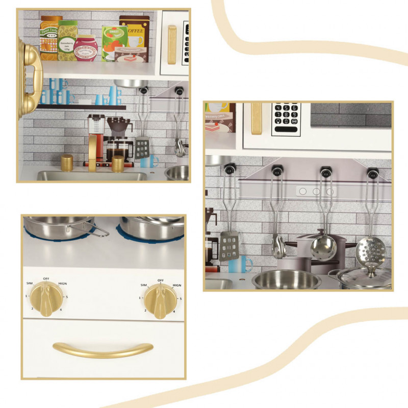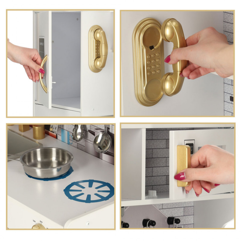 Accesorii incluse: Oala, tigaie, 4 ustensile metalice, telefon din plastic