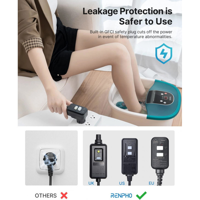 Comparativ cu alte modele, acest aparat spa pentru picioare cu încălzire este echipat cu ștecher GFCI certificat ETL, pentru o utilizare mai sigură. Este potrivit pentru picioare până la mărimea 45 EU (US 11).
