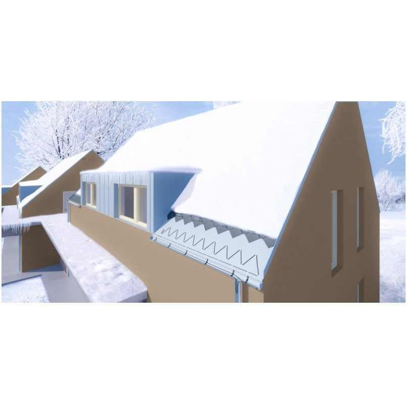 De asemenea, este posibil sa se protejeze acoperisuri, vai de acoperis, muchii ale acoperisurilor etc. Aici, cablul este de obicei instalat intr-un asa numit "configuratie dinti de fierastrau", cu o dispunere intre spire astfel incat puterea instalata sa fie de 200 W/mp, iar cel putin 250 W/mp la altitudini apropiate de 1000 m. Atasarea cablului pe acoperisuri este relativ problematica. In general, nu este posibil sa se faca deschideri, lipiri sau suduri pe acoperis. Aceasta problema este rezolvata individual pentru fiecare aplicatie - de exemplu, cu ajutorul cablurilor de otel.