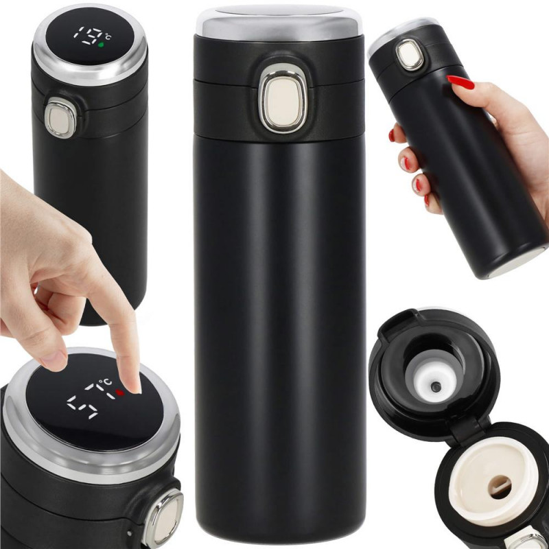 Diametrul bazei: aproximativ 6,5 cm Termosul nostru asigura o izolare termica excelenta, indeplinind cele mai inalte standarde de calitate. In plus, un capac etans echipat cu un sigiliu asigura siguranta impotriva scurgerilor accidentale. Afisaj LED inteligent: Termosul este echipata cu un afisaj led care va permite sa monitorizati cu usurinta temperatura bauturii din interiorul canii.