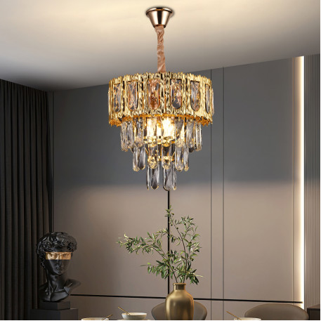 Candelabru Cristal BELVEDERE Petito, 3xE14, Ø30cm, Auriu Lucios, Inaltime Reglabila Compact, dar spectaculos, BELVEDERE Petito este alegerea ideala pentru cei care isi doresc un strop de rafinament intr-un spatiu mai restrans. Designul sau circular cu diametru de 30 cm este accentuat de detalii aurii lucioase si cristale stralucitoare, creand un joc elegant de lumini. Cele 3 becuri E14 ofera o iluminare echilibrata si placuta, iar inaltimea reglabila permite o adaptare perfecta la nevoile fiecarei incaperi — de la dining-uri moderne pana la holuri primitoare. Incanto imbina subtil luxul clasic cu functionalitatea contemporana, oferind un efect vizual de impact intr-un format delicat.