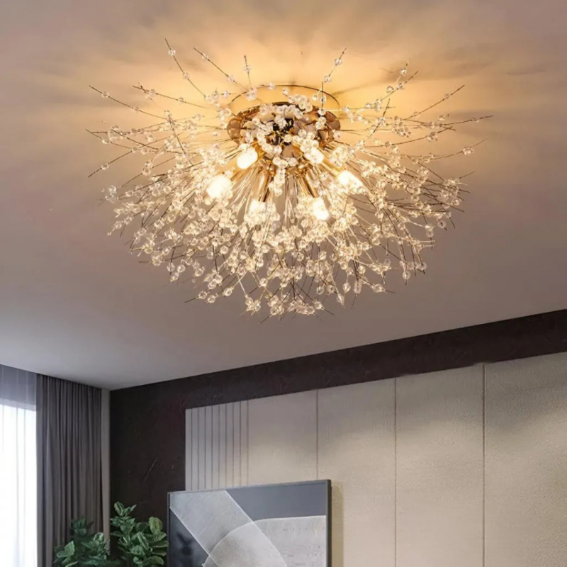 Candelabrul Cristal RONDO Vivace este echipat cu 6 socluri G9 si are un diametru de 49 cm, oferind un efect decorativ spectaculos datorita formei glob/florala si finisajului auriu lucios. Functioneaza cu becuri G9 (neincluse) si are o durata de viata estimata la 25.000 ore. Constructia este aplicata, cu montaj pe tavan, realizata din cristal si metal. Inaltimea totala este de 38 cm. Este recomandat pentru dormitor, living sau hol, oferind un accent elegant in orice spatiu. *Becurile nu sunt incluse!