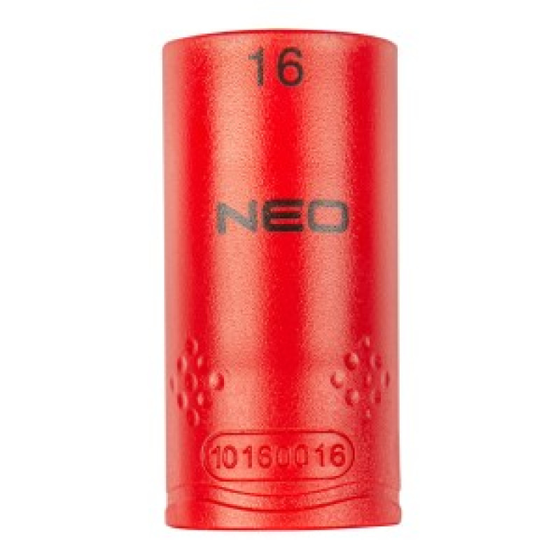 Cap hexagonal 1/2 "NEO (nr. ref. 01-186), dimensiune 16 mm, realizat din otel durabil, crom vanadiu. Certificat pentru lucrari sub tensiuni de pana la 1000 V. Forma hexagonala a capului previne deformarea capului surubului.