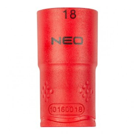 Cap hexagonal 1/2 "NEO (nr. ref. 01-188), dimensiune 18 mm, realizat din otel durabil, crom vanadiu. Certificat pentru lucrari sub tensiuni de pana la 1000 V. Forma hexagonala a capului previne deformarea capului surubului.