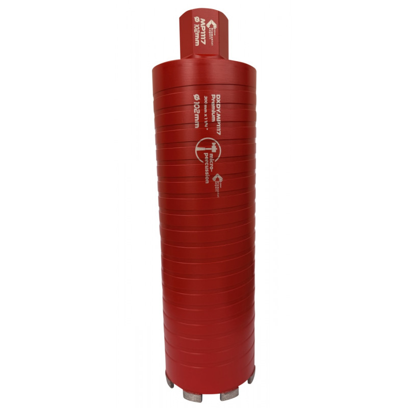 - Carota diamantată cu micro-percuție DXDY.MP1117 este o carotă profesională de înaltă performanță, proiectată special pentru penetrarea rapidă și uscată a betonului armat și a materialelor de construcții cu densitate ridicată.