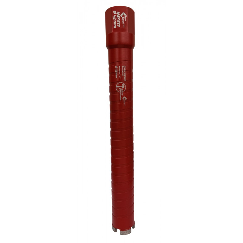 - Carota diamantată cu micro-percuție DXDY.MP1117 este o carotă profesională de înaltă performanță, proiectată special pentru penetrarea rapidă și uscată a betonului armat și a materialelor de construcții cu densitate ridicată.