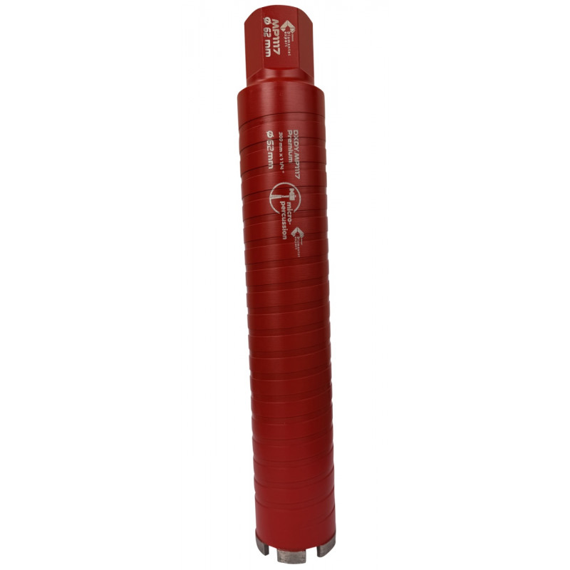 - Carota diamantată cu micro-percuție DXDY.MP1117 este o carotă profesională de înaltă performanță, proiectată special pentru penetrarea rapidă și uscată a betonului armat și a materialelor de construcții cu densitate ridicată.