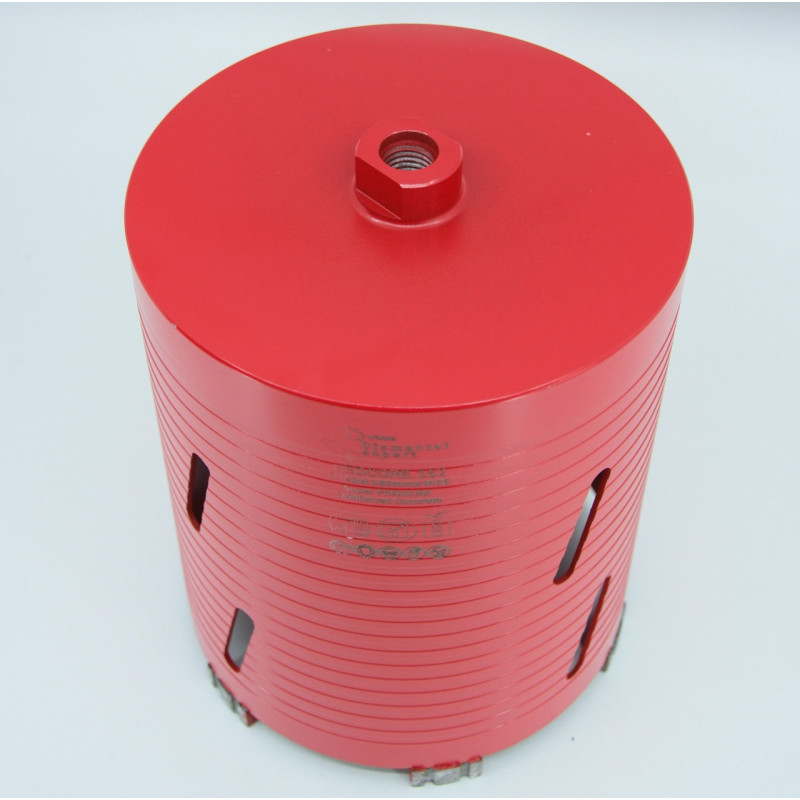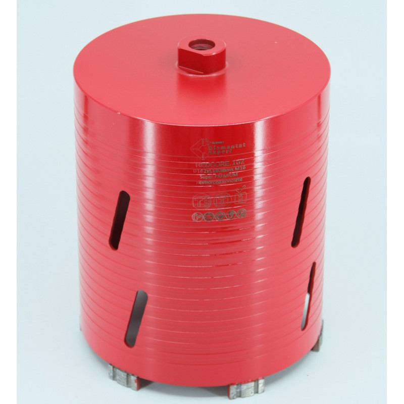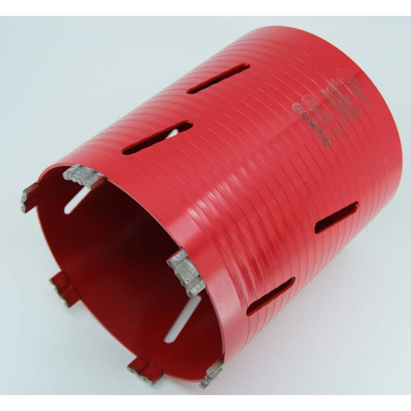 Carota diamantată Super PREMIUM un design robust, cu segmenti mari de tip Turbo, care asigură o viteză mare de tăiere și o evacuare eficientă a șlamului și prafului. Segmenti diamantati de înaltă calitate garantează o durabilitate excepțională și eficiență, în special în materiale dure precum betonul armat, granitul și marmura.