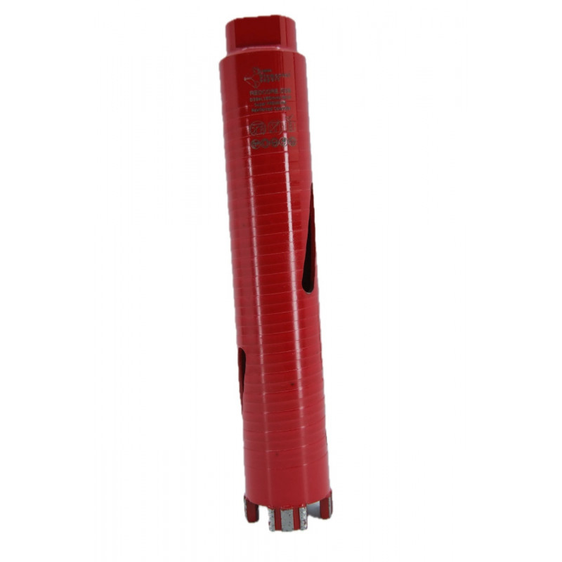 Carota diamantată Super PREMIUM un design robust, cu segmenti mari de tip Turbo, care asigură o viteză mare de tăiere și o evacuare eficientă a șlamului și prafului. Segmenti diamantati de înaltă calitate garantează o durabilitate excepțională și eficiență, în special în materiale dure precum betonul armat, granitul și marmura.