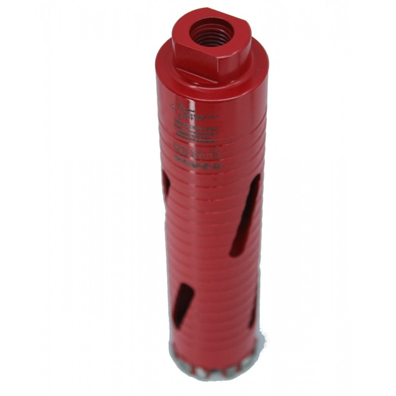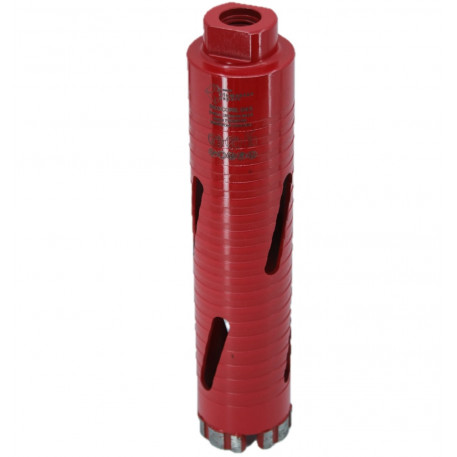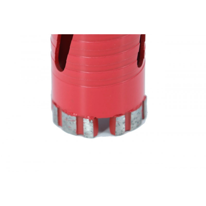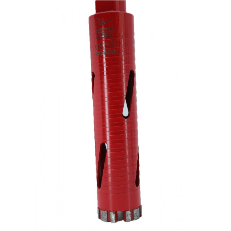 Carota diamantată Super PREMIUM un design robust, cu segmenti mari de tip Turbo, care asigură o viteză mare de tăiere și o evacuare eficientă a șlamului și prafului. Segmenti diamantati de înaltă calitate garantează o durabilitate excepțională și eficiență, în special în materiale dure precum betonul armat, granitul și marmura.