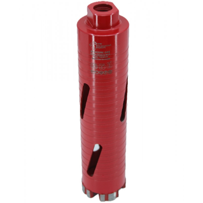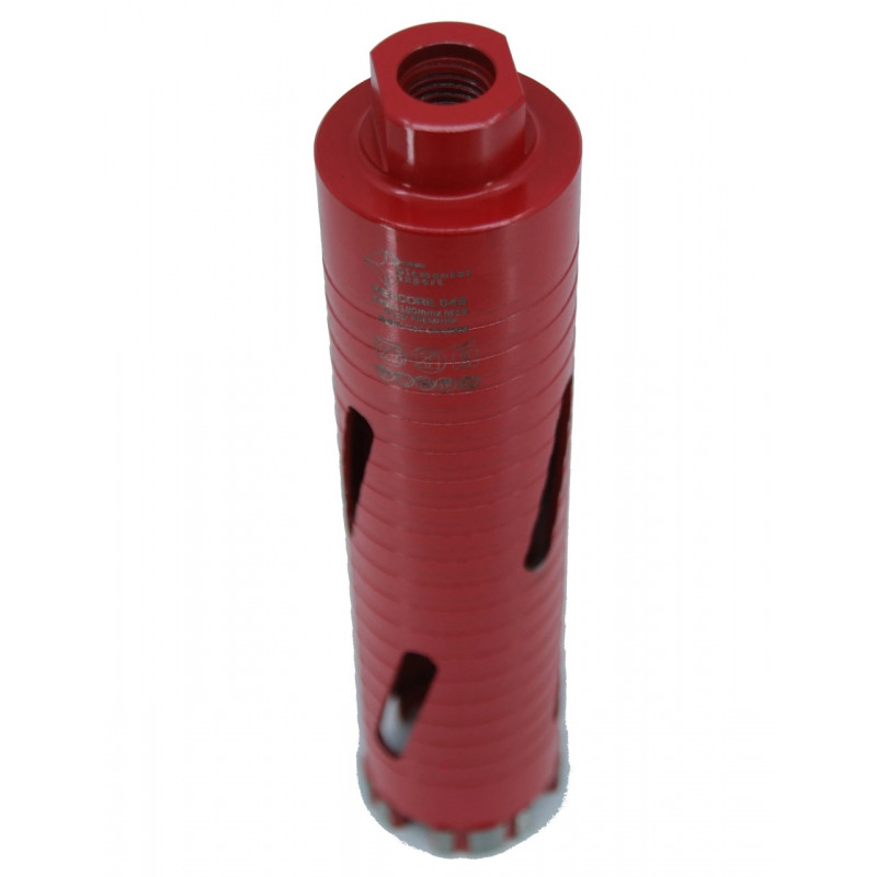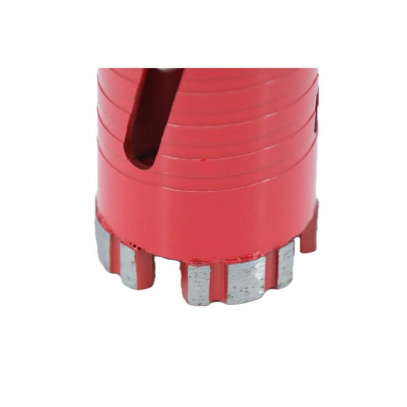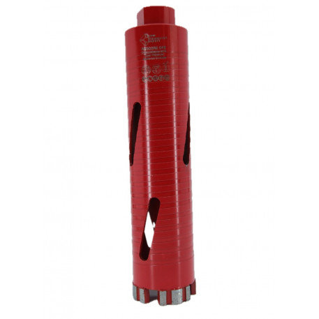 Carota diamantată Super PREMIUM un design robust, cu segmenti mari de tip Turbo, care asigură o viteză mare de tăiere și o evacuare eficientă a șlamului și prafului. Segmenti diamantati de înaltă calitate garantează o durabilitate excepțională și eficiență, în special în materiale dure precum betonul armat, granitul și marmura.