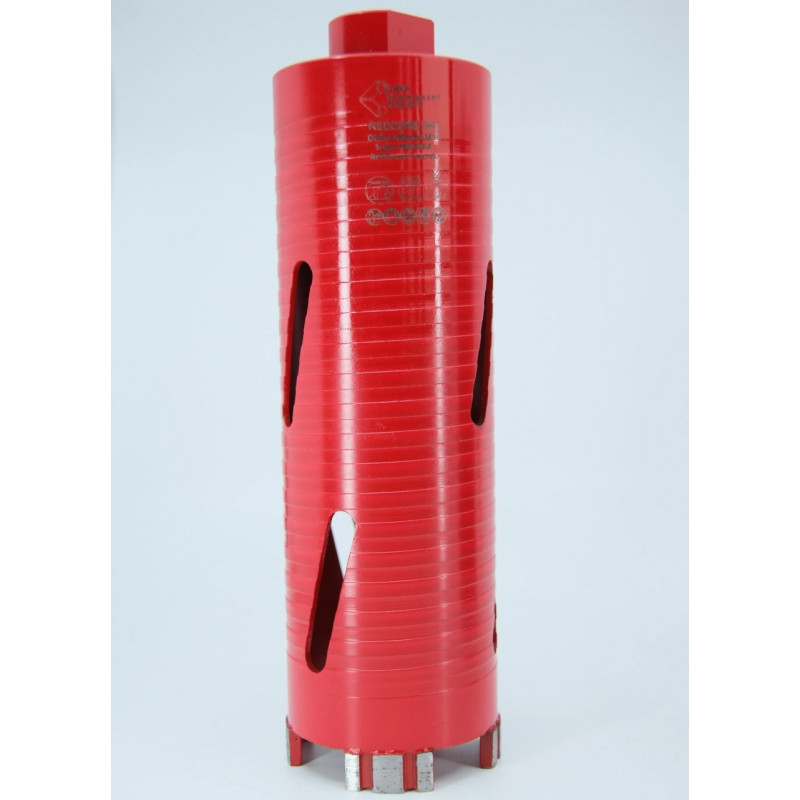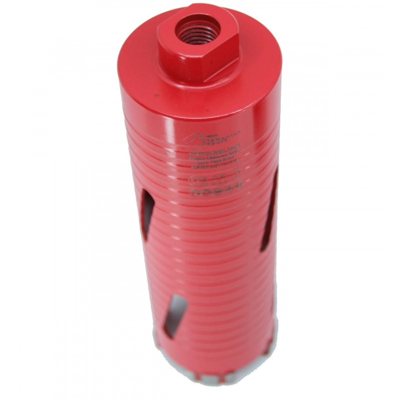 Carota diamantată Super PREMIUM un design robust, cu segmenti mari de tip Turbo, care asigură o viteză mare de tăiere și o evacuare eficientă a șlamului și prafului. Segmenti diamantati de înaltă calitate garantează o durabilitate excepțională și eficiență, în special în materiale dure precum betonul armat, granitul și marmura.