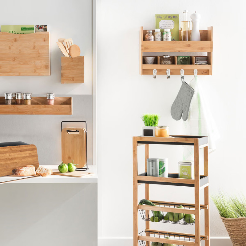 Scurta descriere Caruciorul 5 Five Blackwood este solutia practica si eleganta pentru organizarea spatiului in baie, bucatarie sau birou. Cu 3 rafturi deschise, structura compacta si roti pentru manevrare usoara, acest carucior imbina utilul cu esteticul datorita combinatiei de bambus natural si MDF finisat negru.