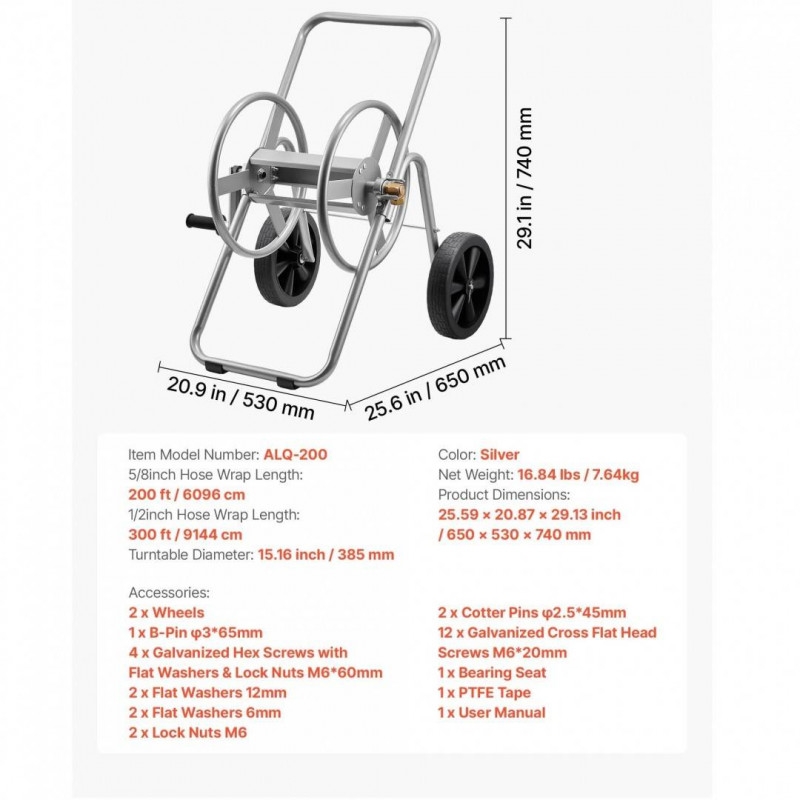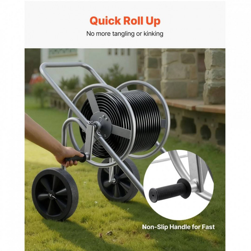centru jos, acest carucior pentru furtun de apa cu roata se misca constant pe