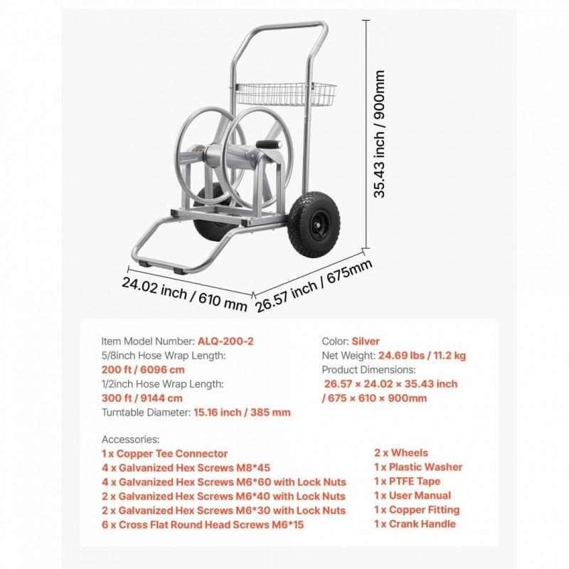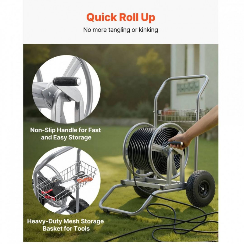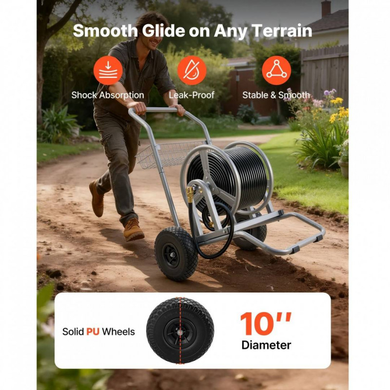 centru jos, acest carucior pentru furtun de apa cu roata se misca constant pe