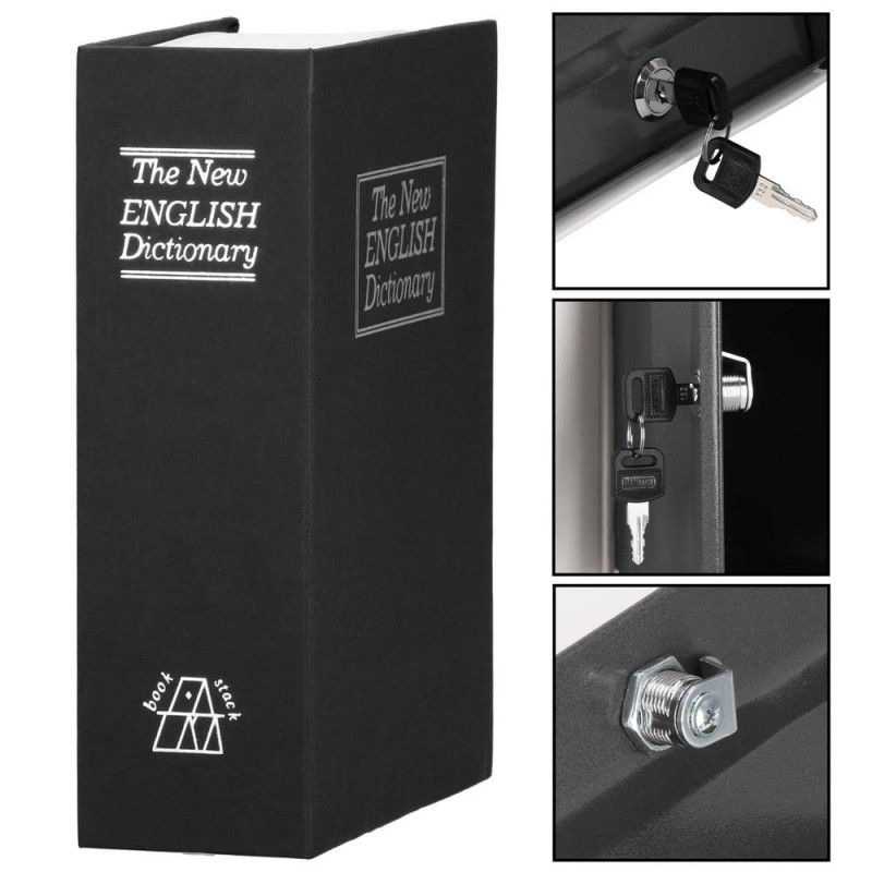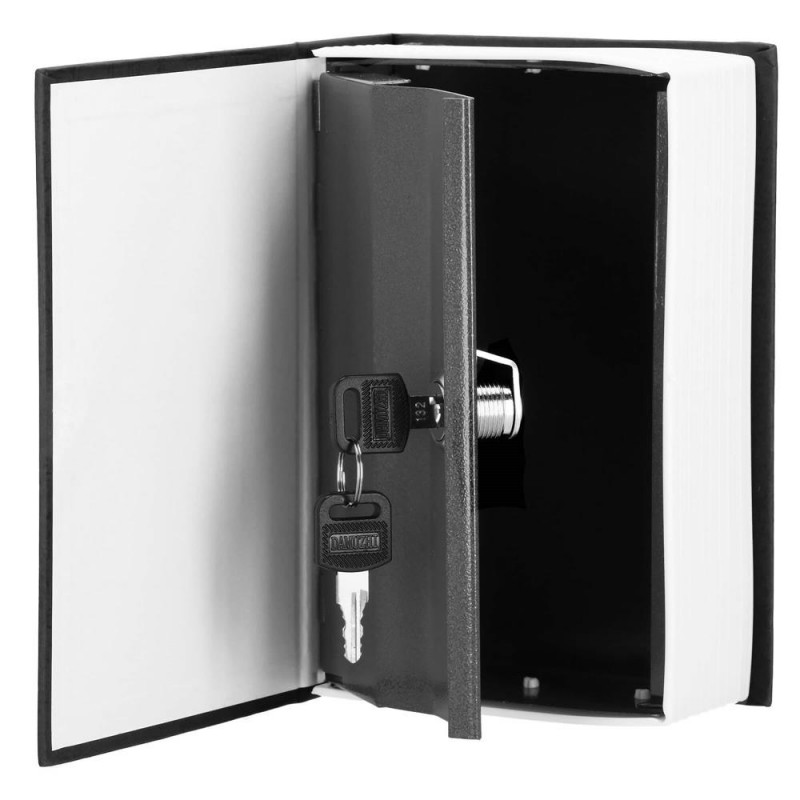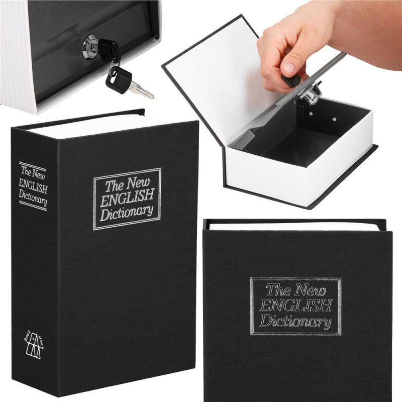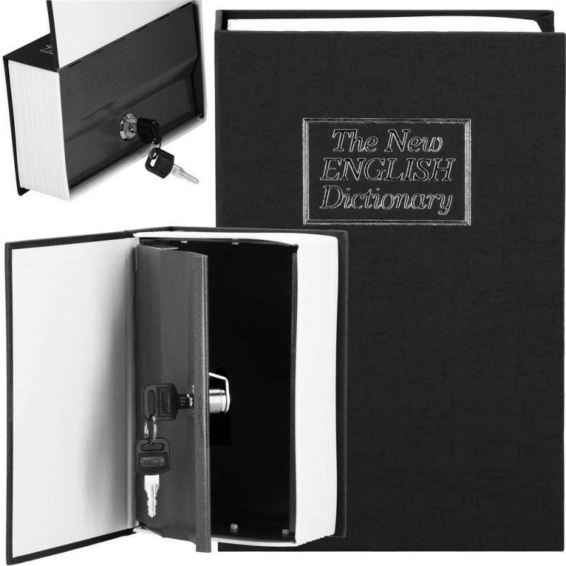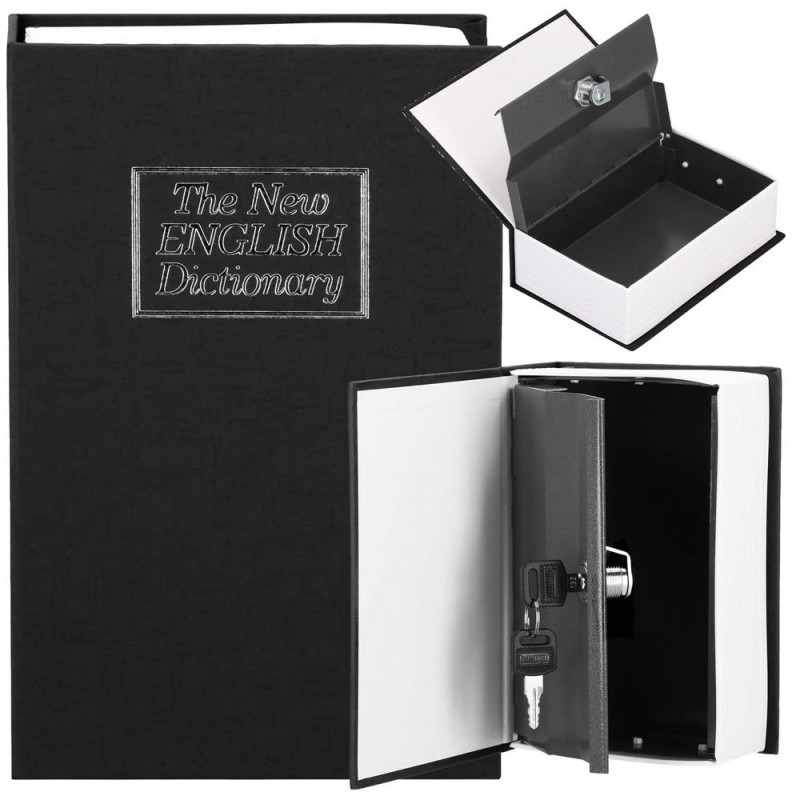 Scop: documente, chei, bani, suporturi de date Un element esential pentru fiecare casa si birou, acest seif de inalta calitate poate fi depozitat pe un raft datorita designului sau. Capacul din carton cu o insertie din plastic face ca seiful sa semene cu un dictionar englezesc chiar si de aproape. In interior, insa, se afla o carcasa metalica extrem de solida, care poate fi incuiata. Asigura siguranta obiectelor de valoare si a documentelor dumneavoastra, in timp ce aspectul discret al seifului le protejeaza de persoanele neautorizate.