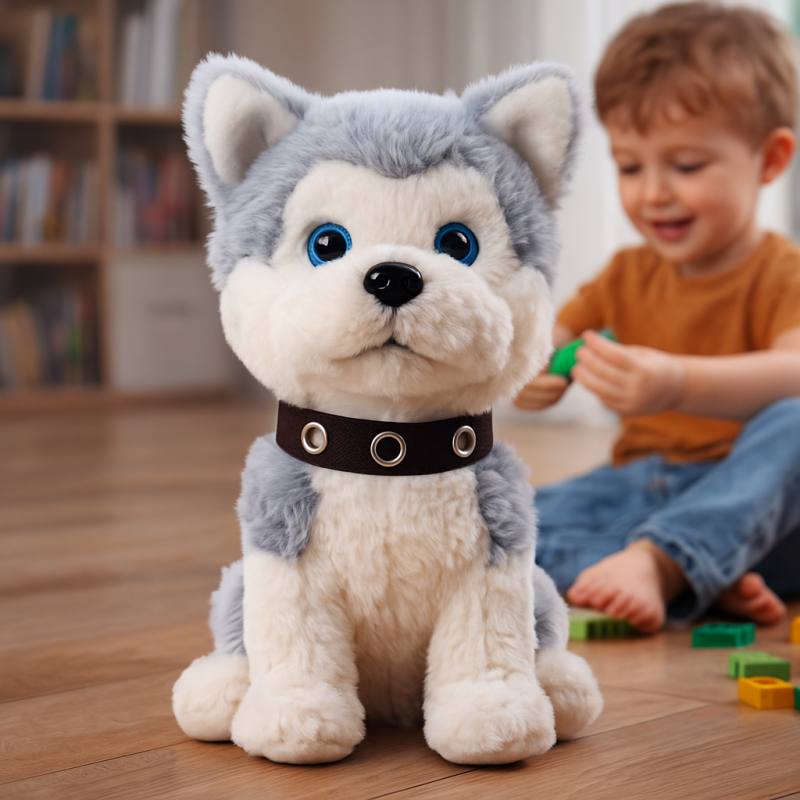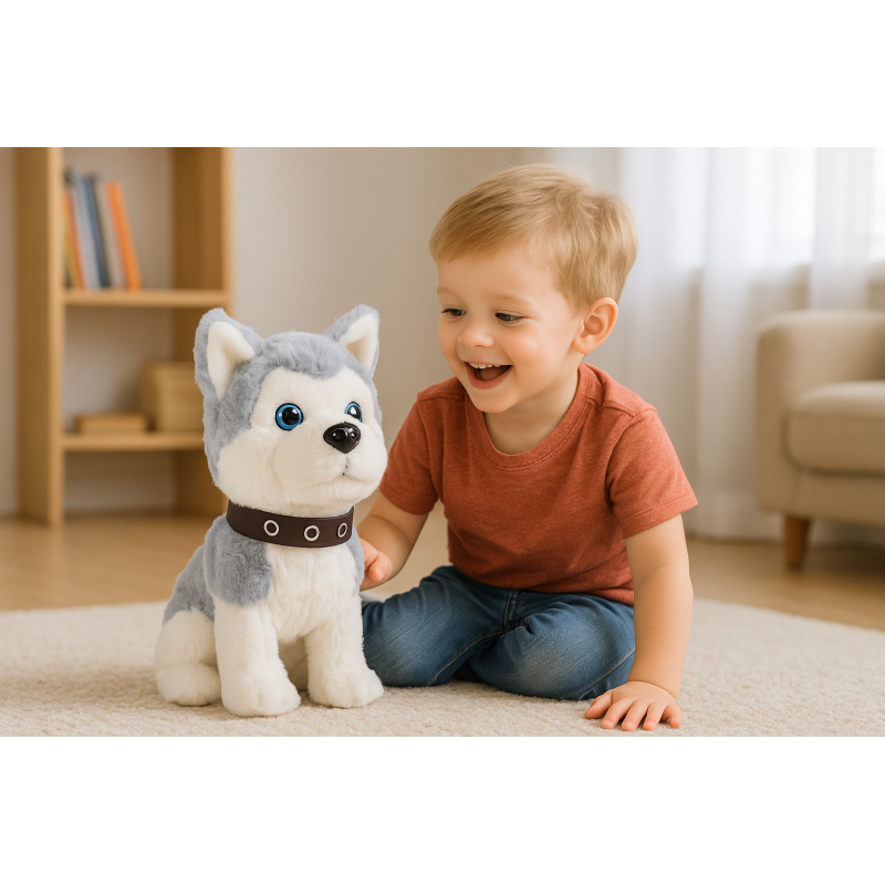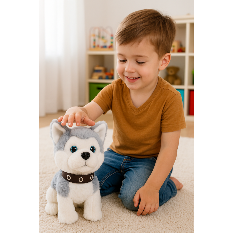 Scurta descriere Catelul interactiv este o jucarie adorabila care raspunde la atingere si sunete precum aplauzele. Emite sunete realiste si executa miscari care il fac sa semene cu un catel adevarat. Este moale, perfect pentru imbratisari si potrivit pentru joaca interactiva a copiilor.