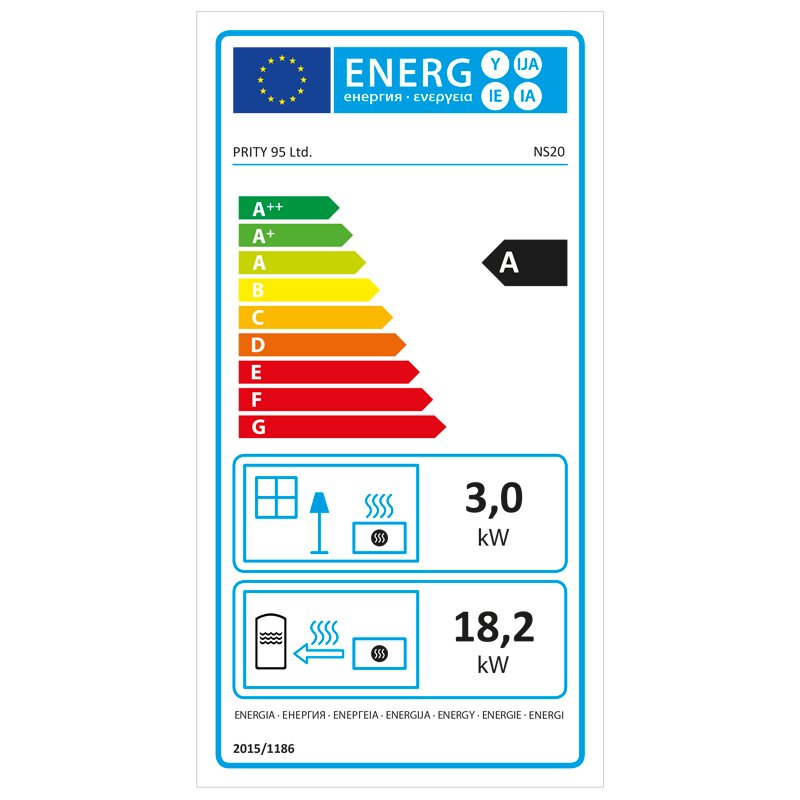 Volumul bazinului de apa este de 35 litri. Cazan Prity NS20 poate incalzi 276m³ de aer la o casa izolata sau 200m³ de aer la o casa neizolata.