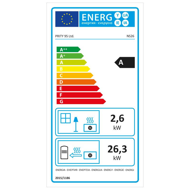 Volumul bazinului de apa este de 62 litri. Cazan Prity NS26 poate incalzi 400m³ de aer la o casa izolata sau 288m³ de aer la o casa neizolata.